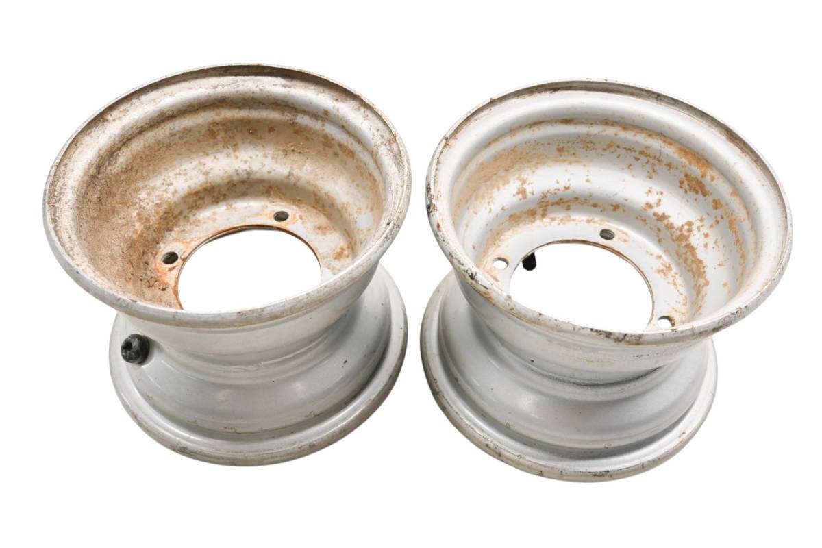 Rims are in good condition. Have light wear and scuff marks. Comes as pictured. Was removed from a 2008 Polaris Outlaw 50 2x4.