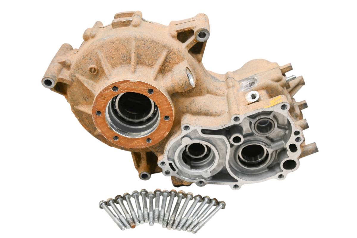 Gear case is in good condition with no cracks or repairs. Mounting holes are in good shape. Internals have been removed. Finish has light wear. Comes as pictured. Was removed from a 2019 Kawasaki Mule 4010 Trans 4x4 KAF620 and 828 hours.