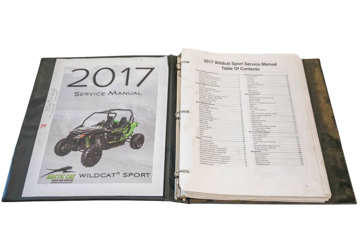 Manual is in good condition, in hard binder. Comes as pictured. Was removed from a 2017 Arctic Cat Wildcat Sport 700 Limited with 792 miles and 81.9 hours.
