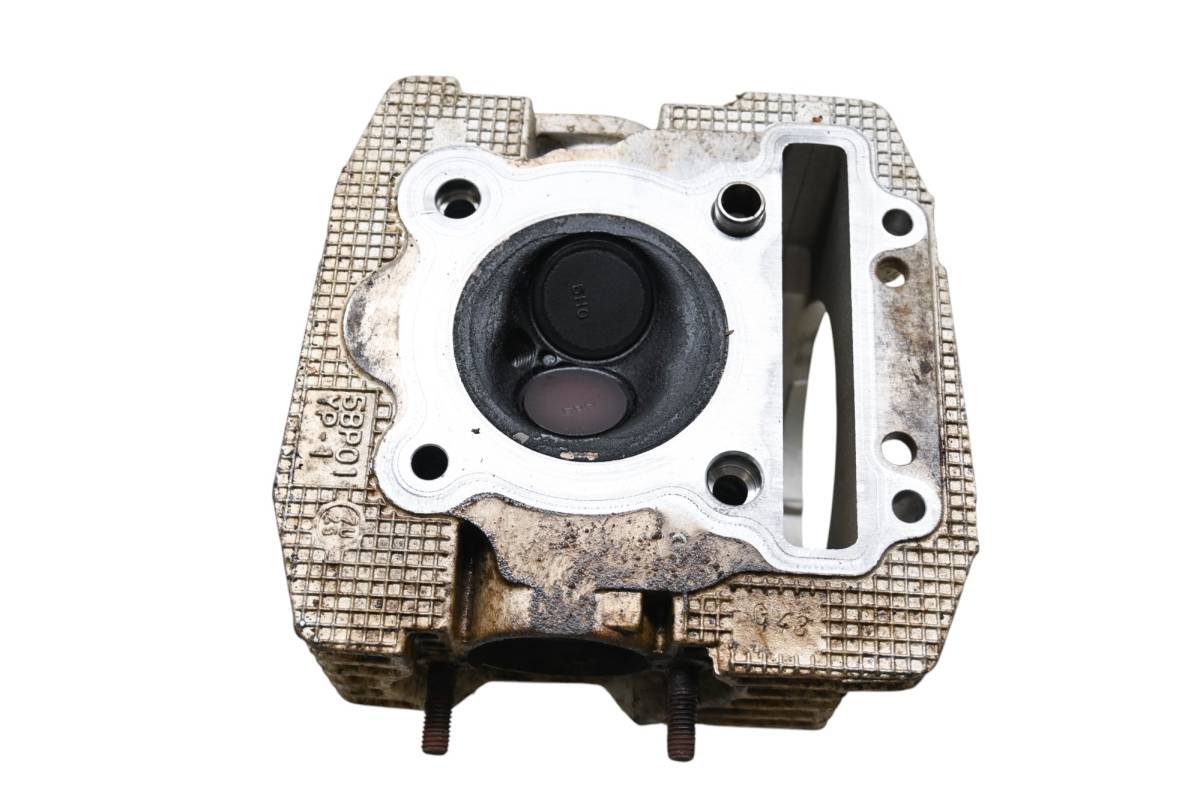 Cylinder head is in good condition. Valves and springs are included. Combustion chamber has some carbon build up. Rocker arms are worn and need replacing. Comes as pictured. Was removed from a running 2008 Yamaha Raptor 250 2x4 YFM250R.