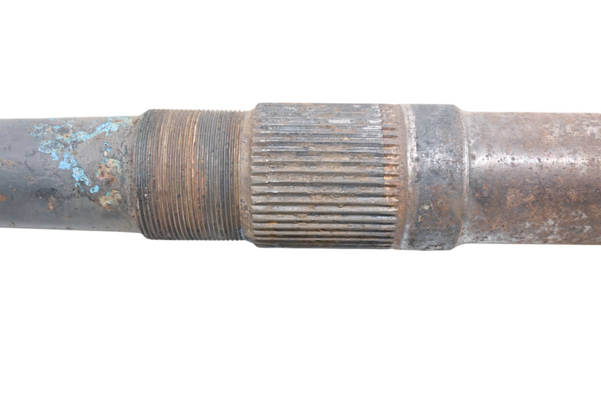 Axle is straight and in good condition. Finish has light wear. Splines and threads are straight. Comes as pictured. Was removed from a 1987 Suzuki Quadzilla 500 LT500R.