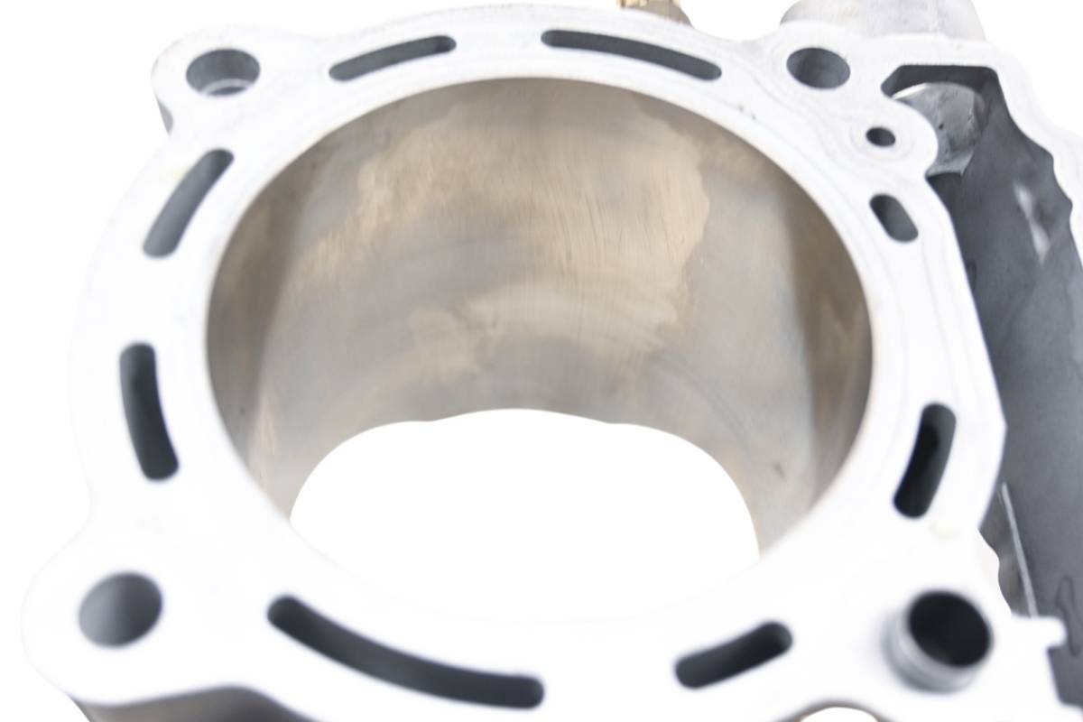 Cylinder is in good condition. Bore has light wear, could use a ball hone. Bore measures 96mm. Comes as pictured. Was removed from a 2008 Kawasaki KFX450R.
