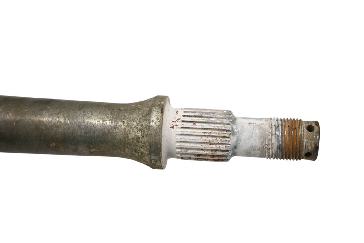 Axle is straight and in good condition. Finish has light wear. Splines and threads are straight. Comes as pictured. Was removed from a running 2009 Kawasaki KFX450R.