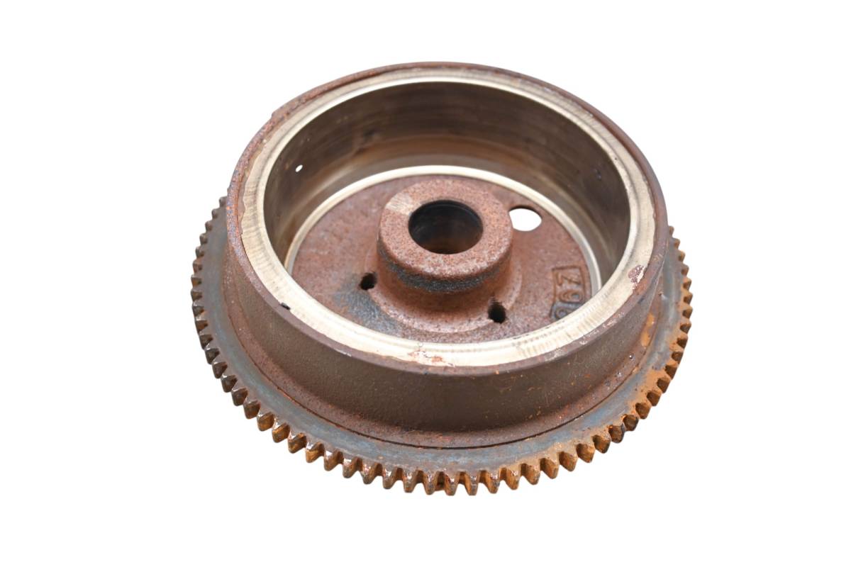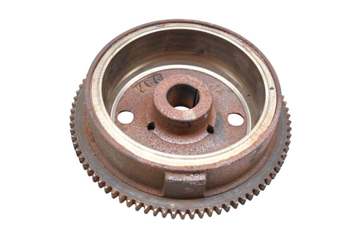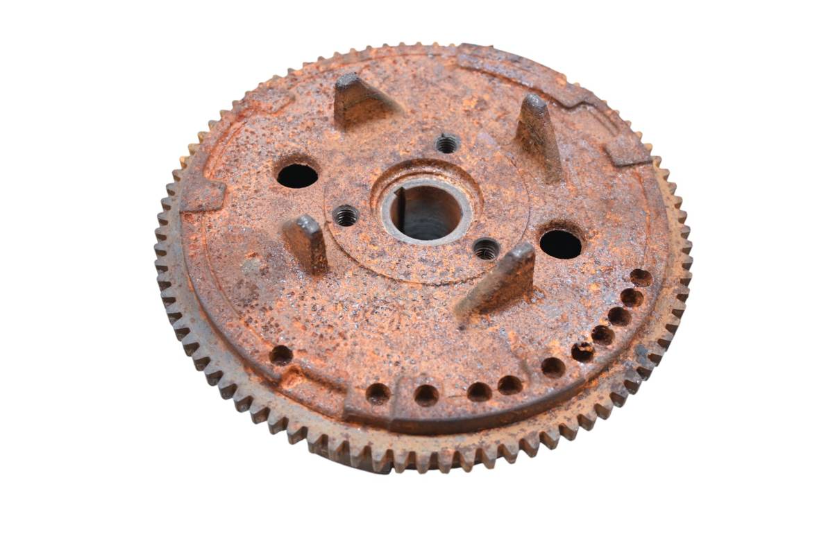 Flywheel is in good working condition. Finish has light wear from use. Comes as pictured. Was removed from a 2000 Polaris Scrambler 500 4x4.