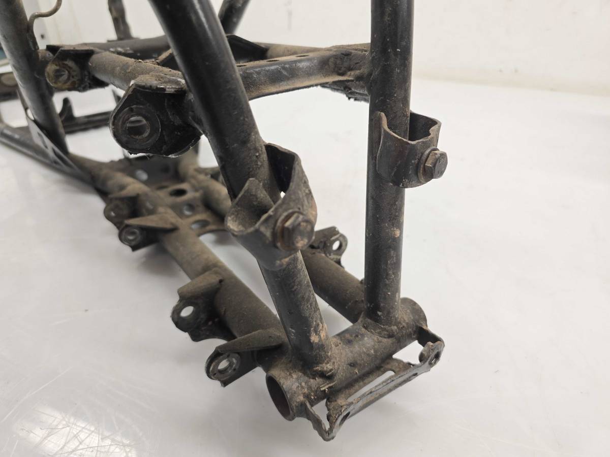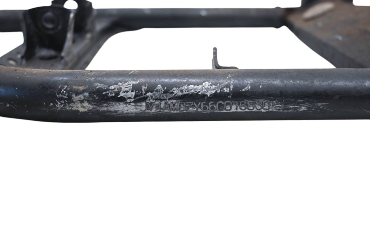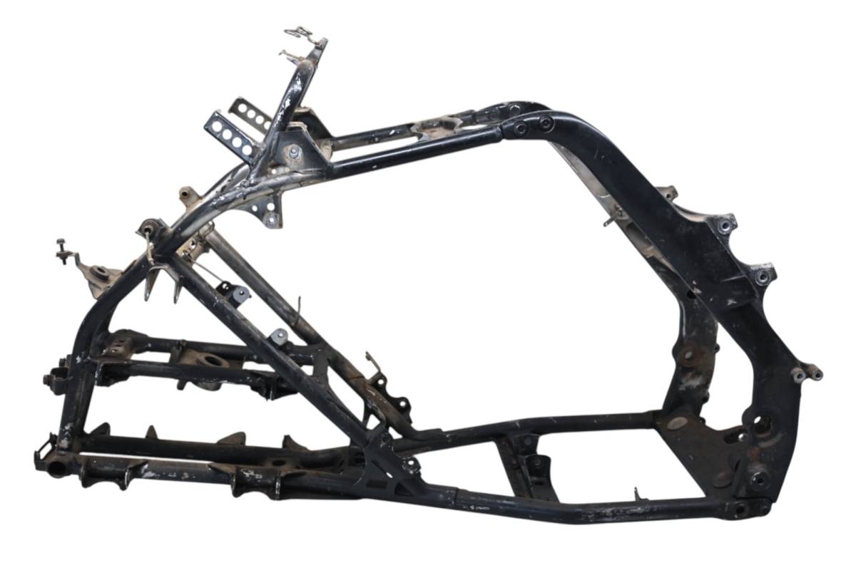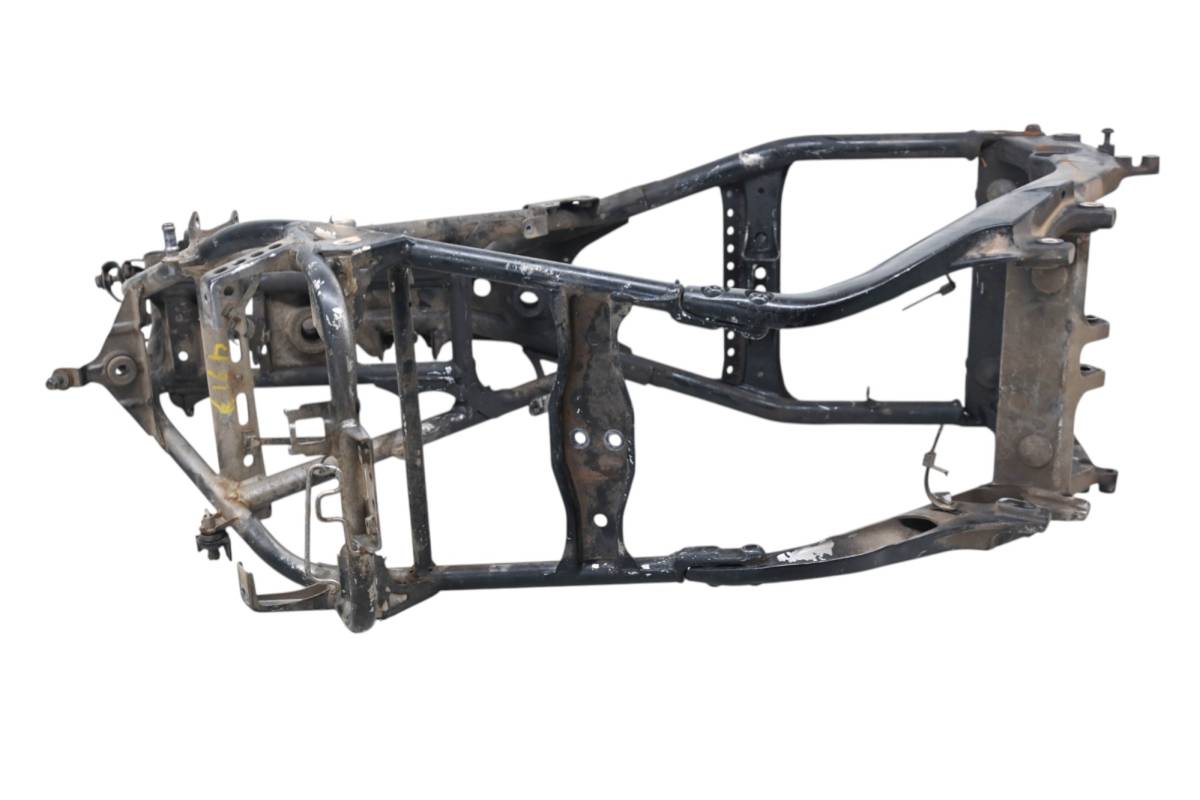 Frame is straight and in good condition. Front bumper mounts are bent. Finish has light wear, no cracks or repairs. Comes with a bill of sale only. Has been spray painted black. Comes as pictured. Was removed from a 2006 Yamaha Raptor 700 2x4 YFM700R.