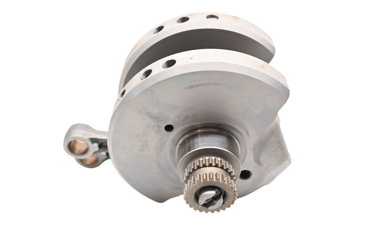 Crank is in good condition. Journals are smooth, splines and threads are straight. Big end clearance is 0.35mm. Comes as pictured. Was removed from a 2006 Victory Kingpin.