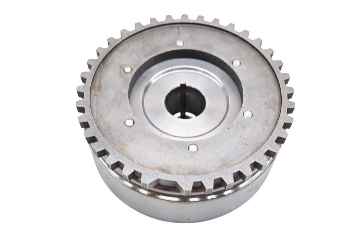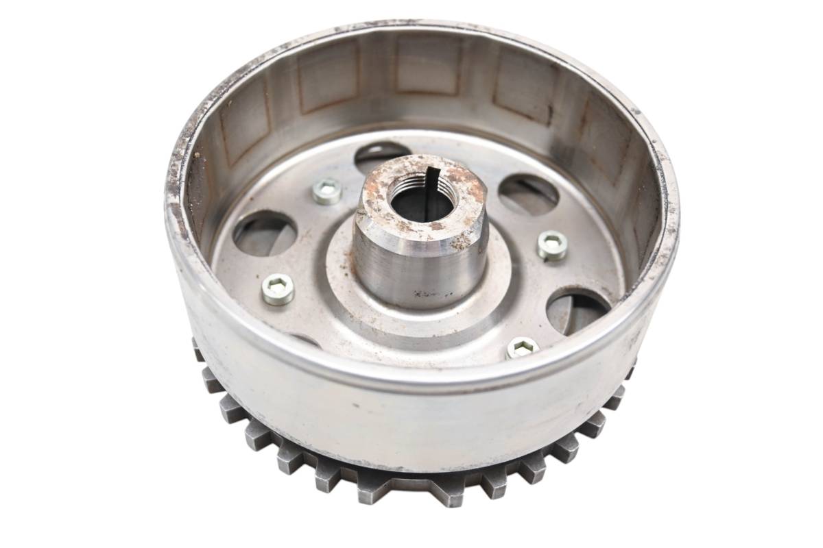 Flywheel is in good working condition. Finish has light wear from use. Comes as pictured. Was removed from a 2006 Victory Kingpin.