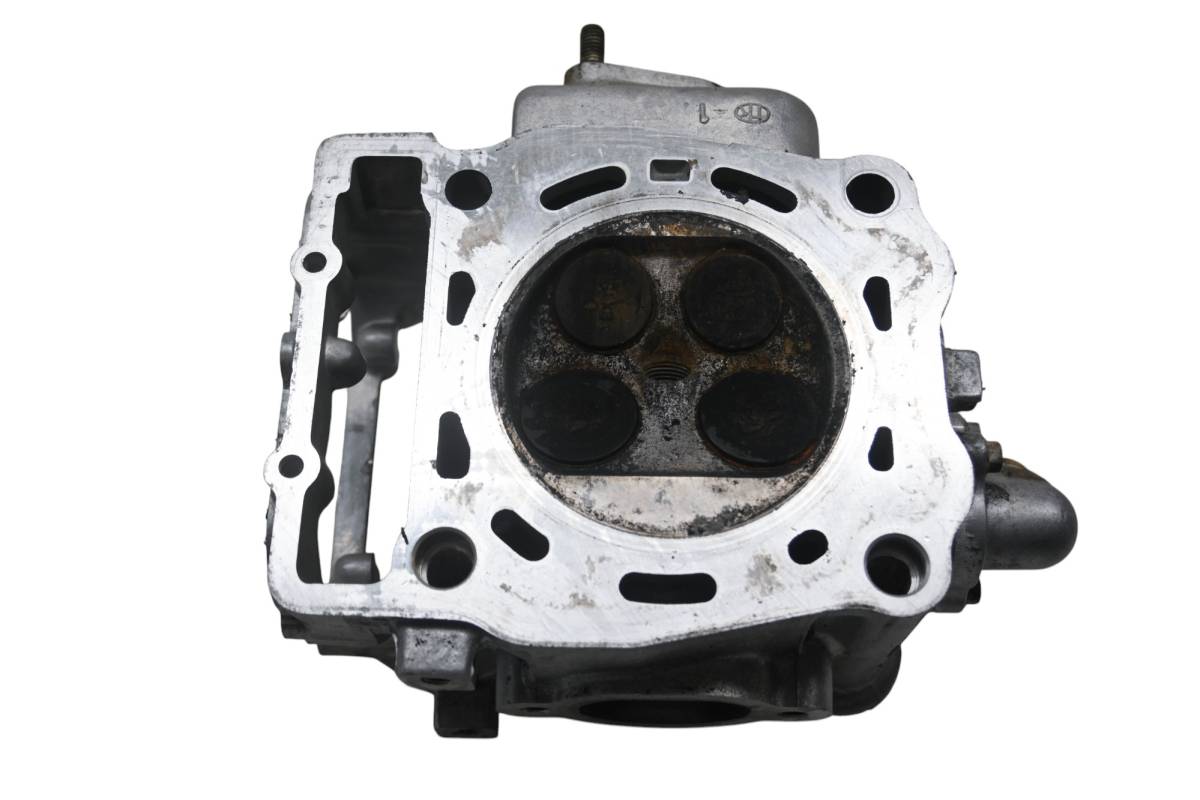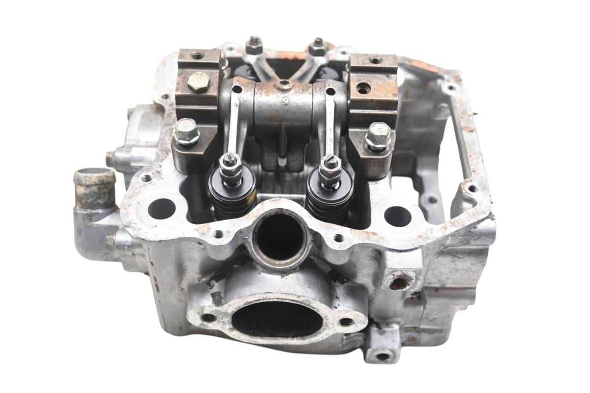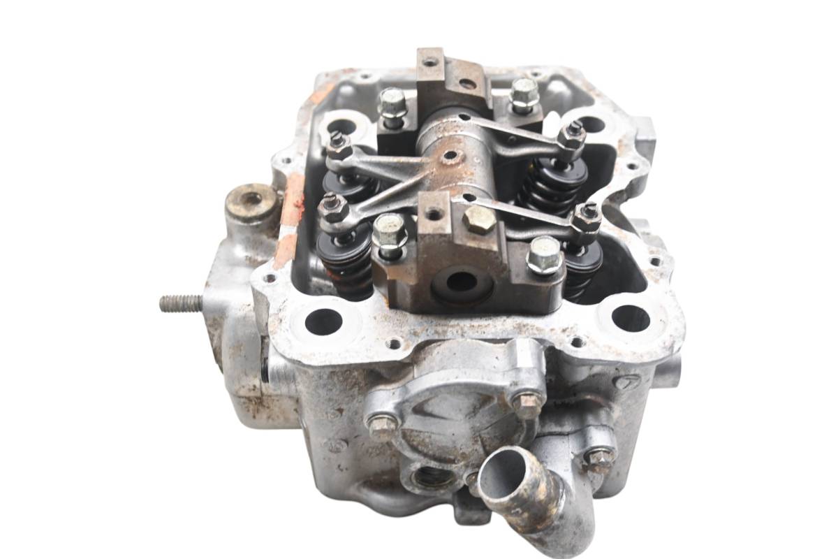 Cylinder head is in good condition. Valves and springs are included. Cam journals are smooth. Combustion chamber has some carbon build up. Finish has light rust. Comes as pictured. Was removed from a 1997 Polaris Magnum 425 4x4.