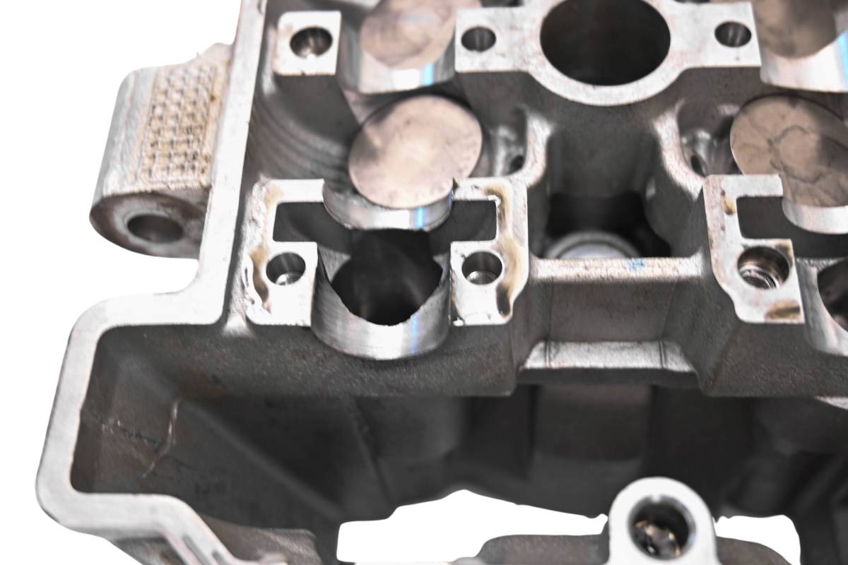 Cylinder head is in poor condition. Cam journals have scoring. Combustion chamber has some carbon build up. Comes as pictured. Was removed from a 2020 Yamaha WR250R with 8297 miles.