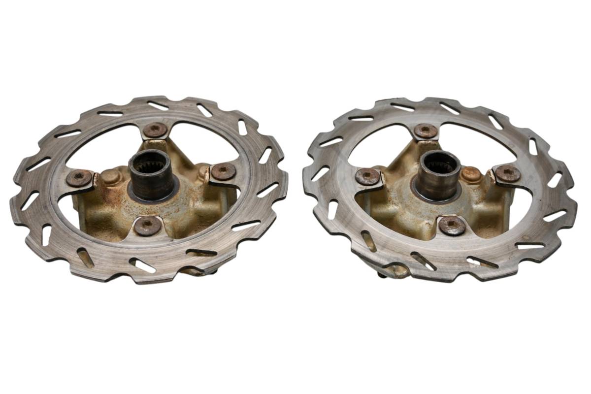 Hubs and rotors are in good condition. Rotors have light wear, bearings are in good shape. Comes as pictured. Was removed from a running 2009 Kawasaki Brute Force 750 4x4i KVF750 with 2645 miles and 430 hours.