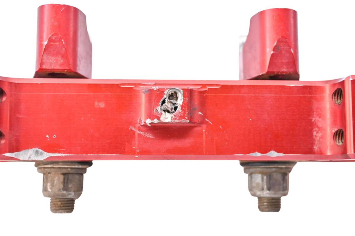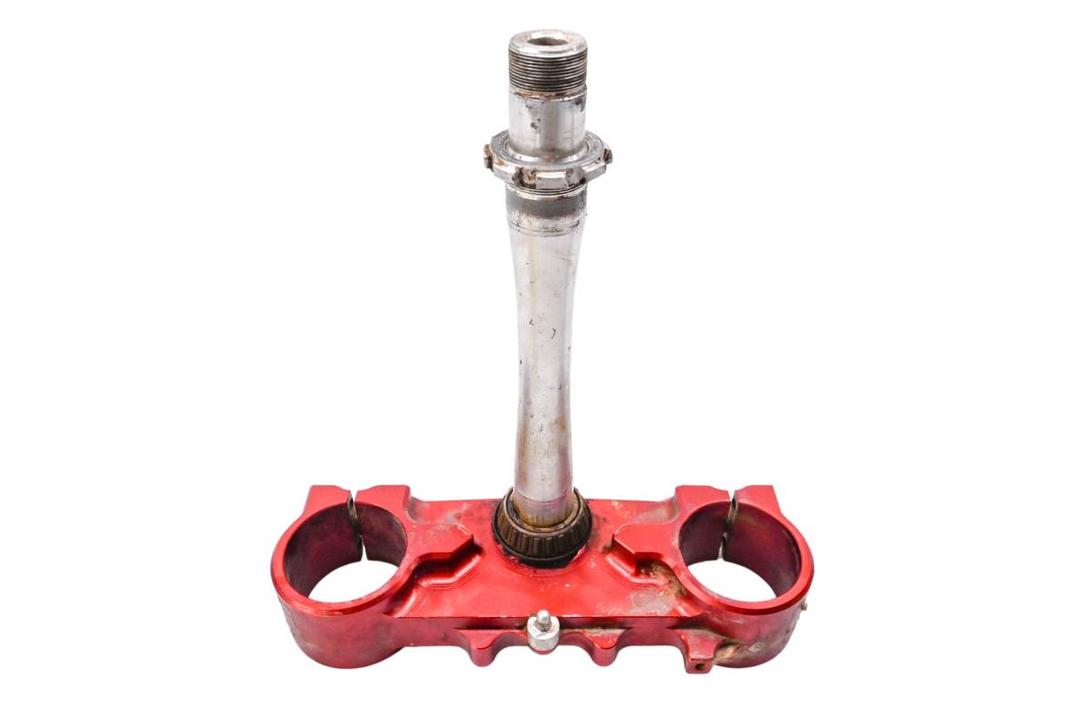 Triple tree is straight and in fair condition. Has light wear from use. One tab has a bolt snapped off and drilled. Comes as pictured. Was removed from a 2000 Honda CR125R.