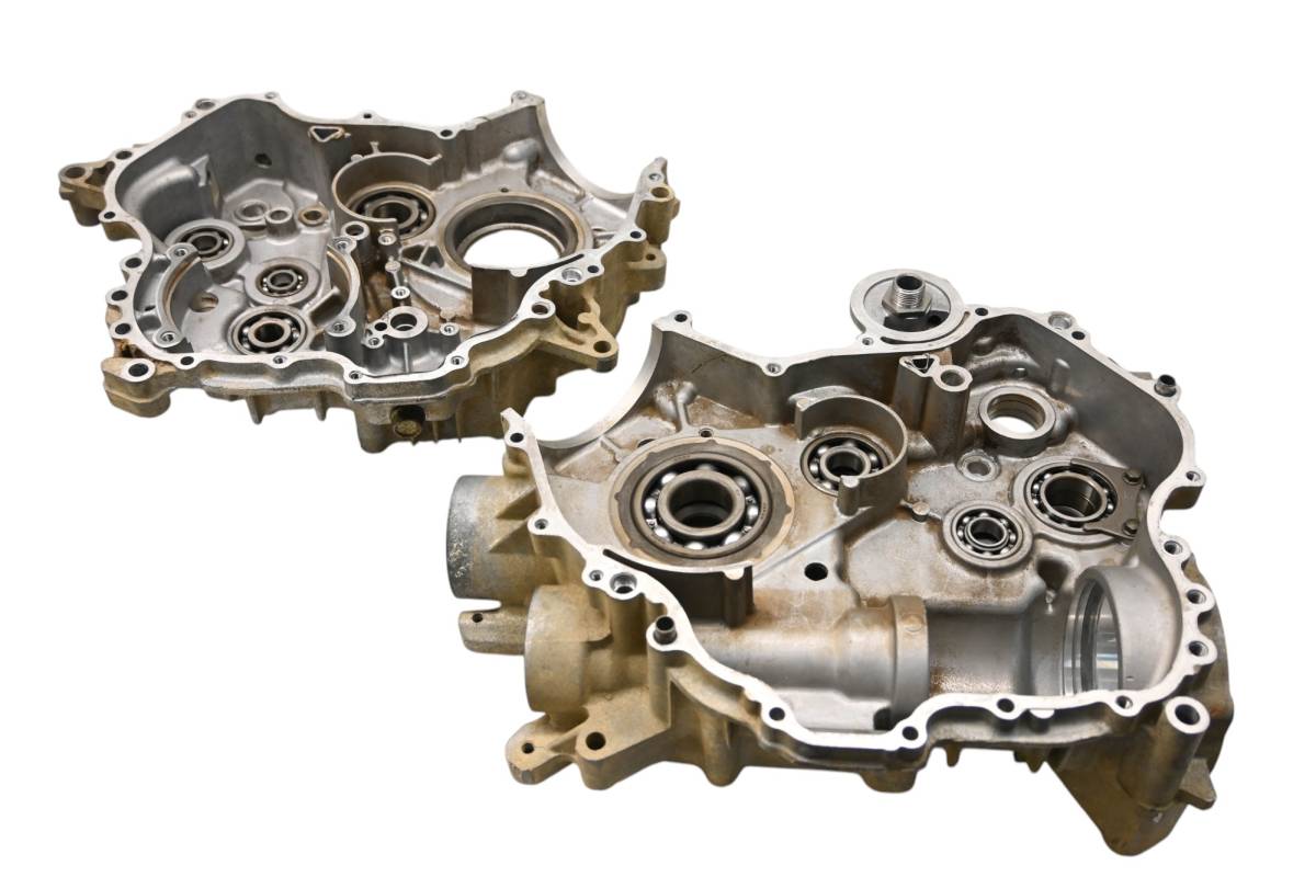 Crankcase is in good condition with no cracks or repairs. Finish has light wear. Bearings are good. Comes as pictured. Was removed from a 2002 Yamaha Grizzly 660 4x4 YFM660F.