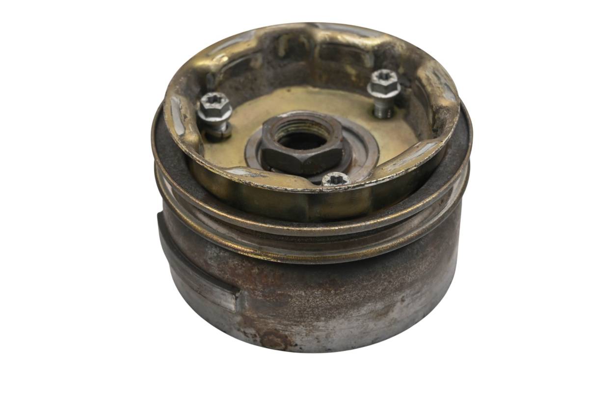 Flywheel is in good working condition. Finish has light wear from use. Comes as pictured. Was removed from a 2013 Ski-Doo Skandic WT 550F.