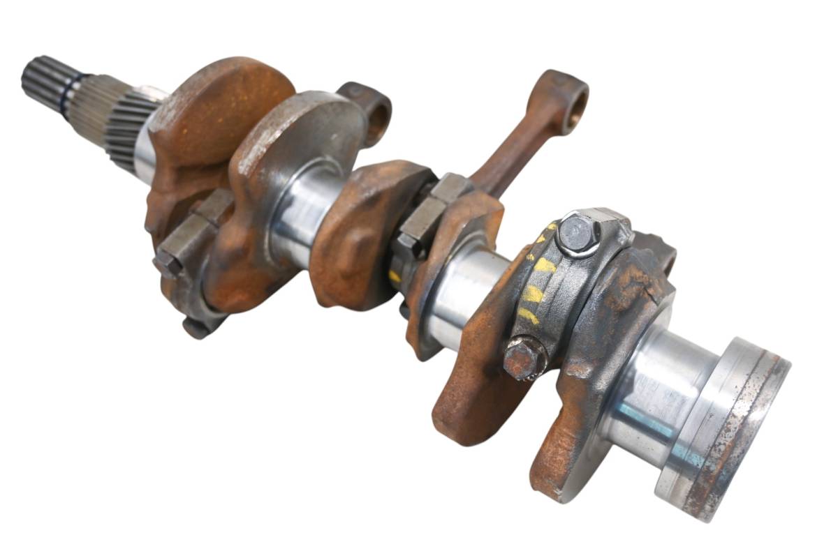 Crank is in good condition. Journals are smooth, splines and threads are straight. Big end clearance is .330mm. Finish has light rust. Comes as pictured. Was removed from a 2015 Kubota RTV-X1100CW.