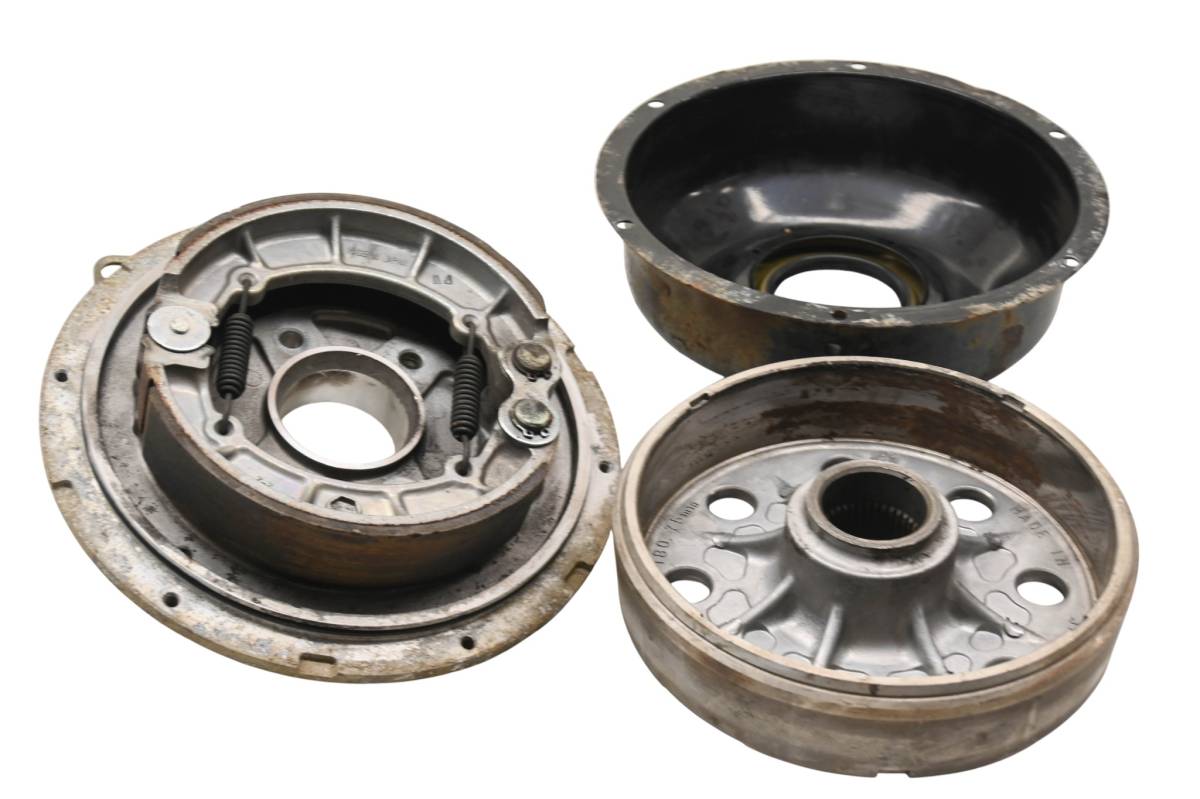 Brake drum is in good working condition with no cracks or repairs. Finish has light wear. Comes as pictured. Was removed from a 1999 Kawasaki Prairie 300 4x4 KVF300.