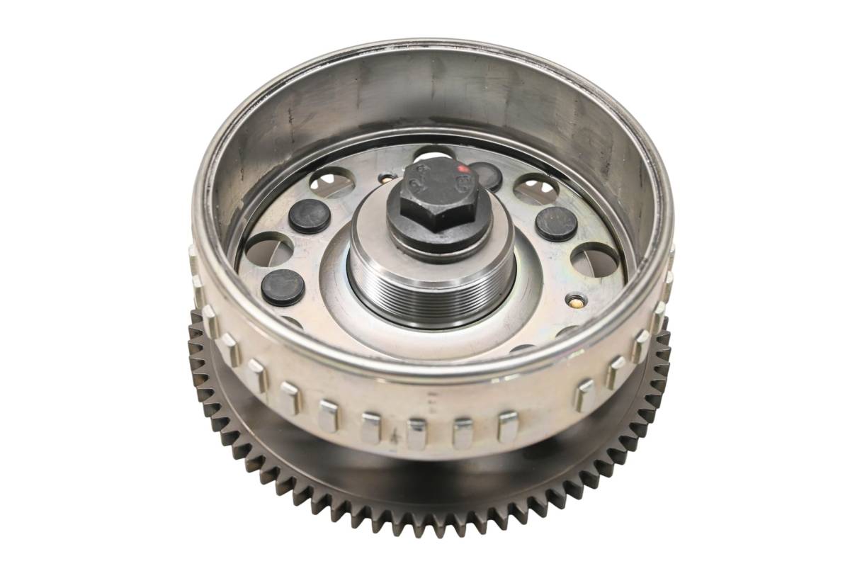 Flywheel is in good working condition. Starter clutch is in good shape. Comes as pictured. Was removed from a 2017 Polaris RZR XP Turbo with 3751.5 miles and 255.1 hours.