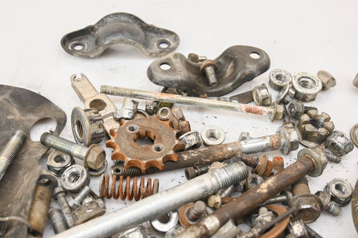 Hardware set includes all of the items pictured. Comes as pictured. Was removed from a 2006 Honda TRX90 Fourtrax 90.