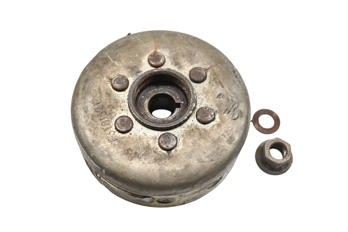 Flywheel is in good working condition. Finish has light wear from use. Comes as pictured. Was removed from a 1989 Kawasaki KX80.