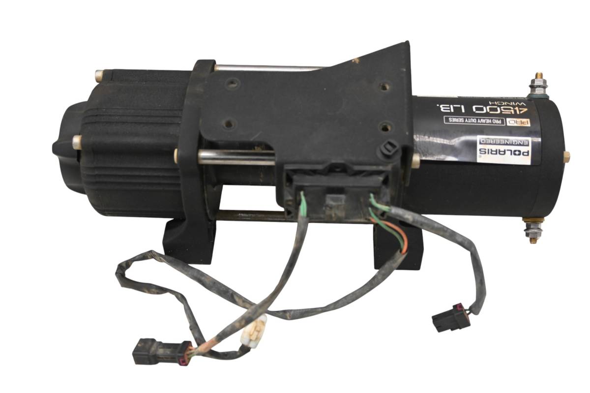 Winch is in good working condition. Harness is in good condition with no spliced or cut wires. Finish has light wear. No rope or hook included. Comes as pictured. Was removed from a running 2023 Polaris General XP 1000 Ultimate with 3375.3 miles and 186.4 hours.