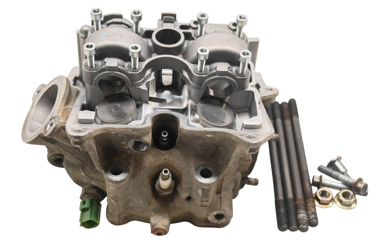 Cylinder head is in good condition. Valves and springs are included. Cam journals are smooth. Combustion chamber has some carbon build up. Comes as pictured. Was removed from a 2009 Can-Am DS450.
