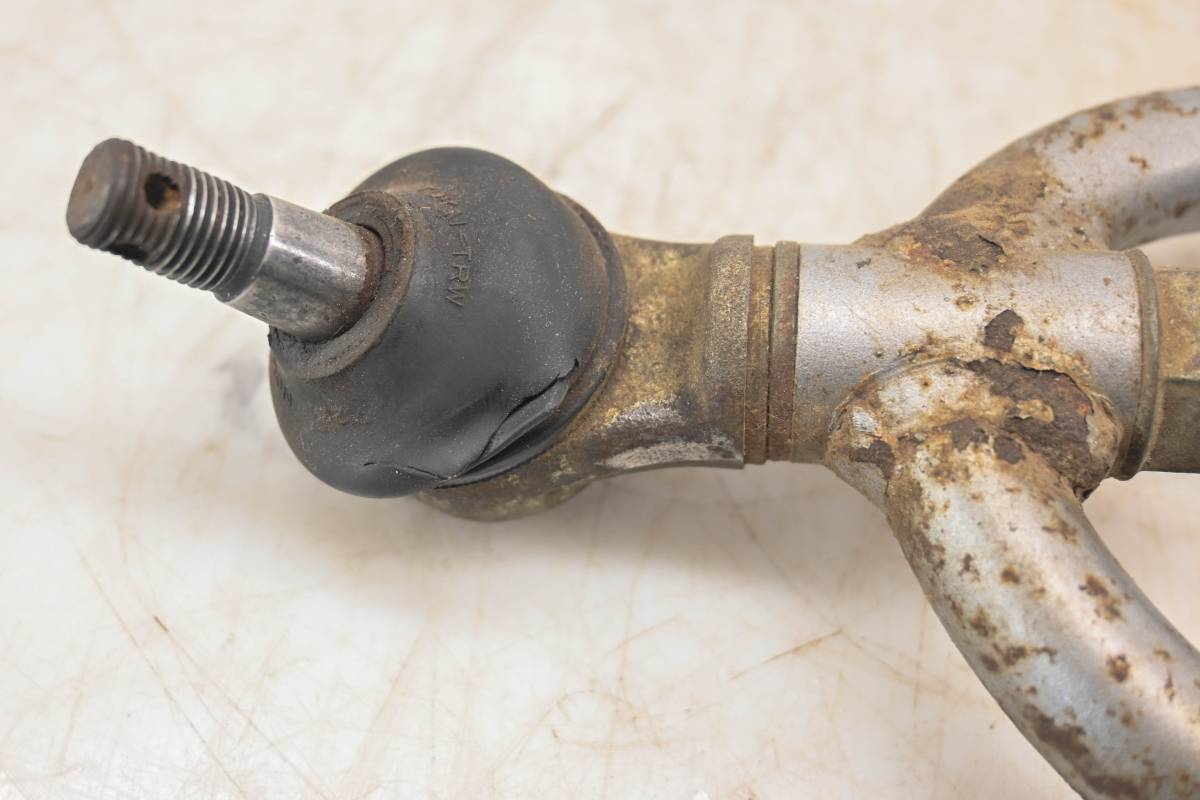 A-Arm is straight and in fair condition. Finish has light wear. Bushings are good. Boot is cracked. Comes as pictured. Was removed from a 1987 Honda TRX250X.