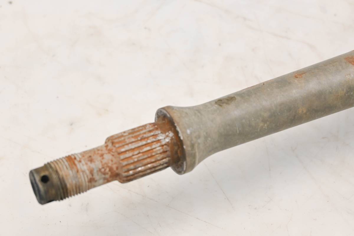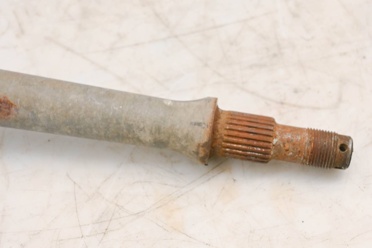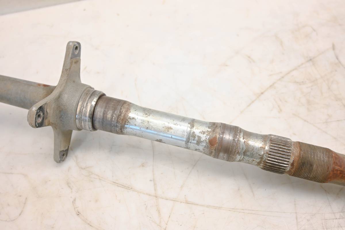 Axle is straight and in good condition. Finish has light wear. Splines and threads are straight. Comes as pictured. Was removed from a 2008 Kawasaki KFX450R.