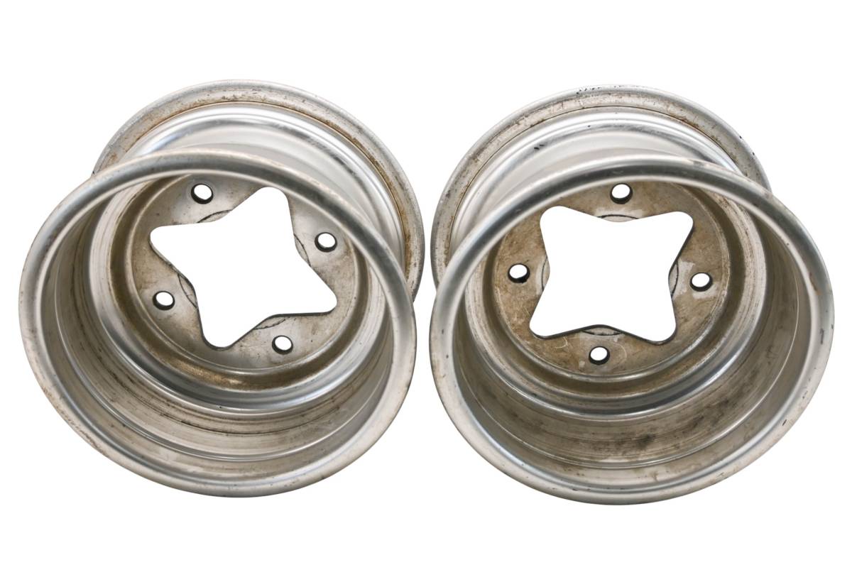 Rims are in good condition. Have light wear and scuff marks. Comes as pictured. Was removed from a 2004 Kawasaki KFX400 LTZ400.