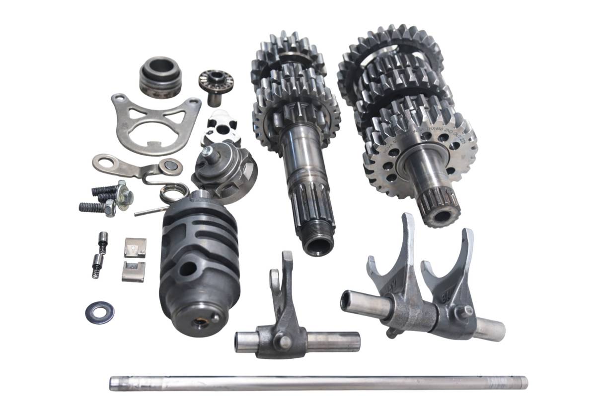 Transmission is in good condition. Gears and teeth have only light wear. Forks are straight. Comes as pictured. Was removed from a running 2008 Honda TRX450R.