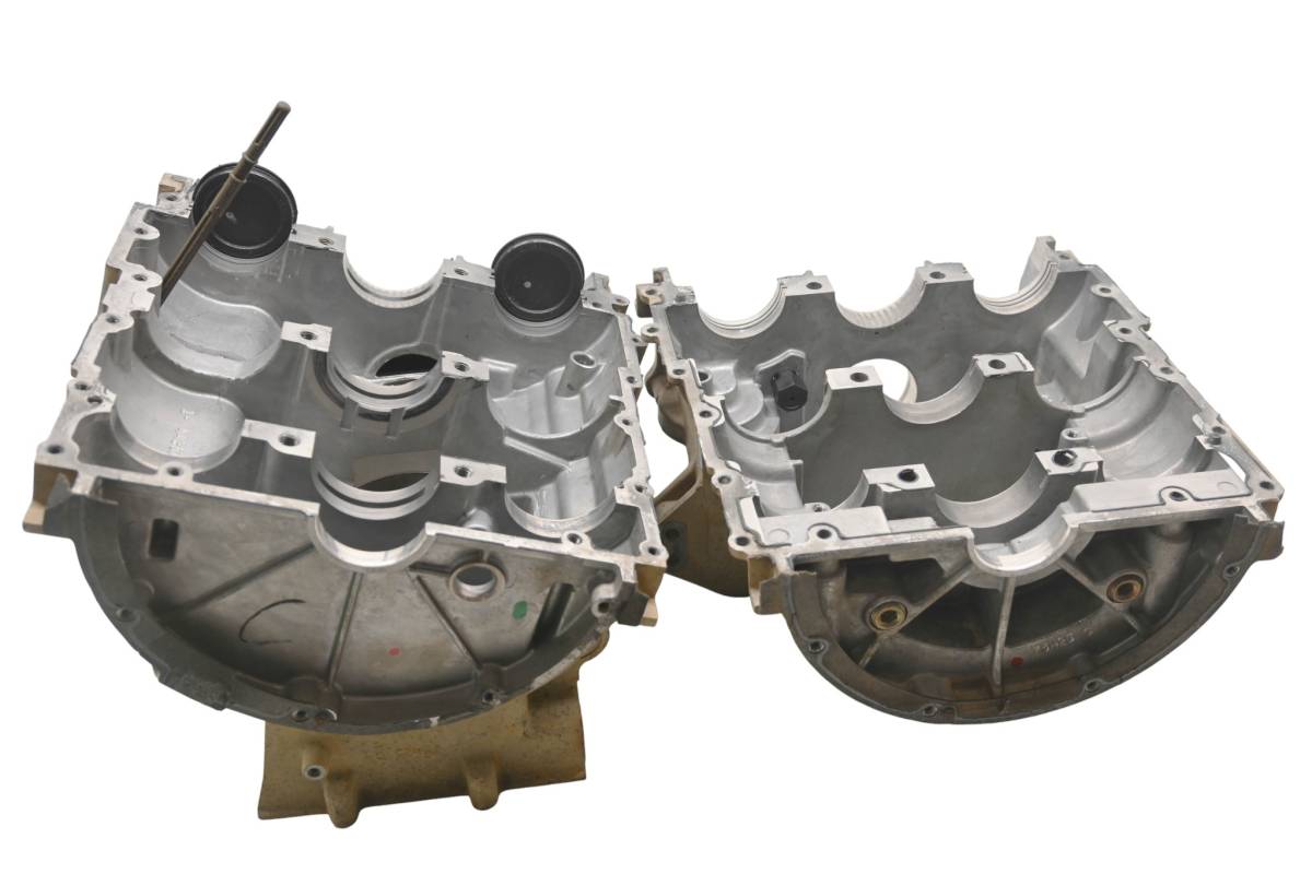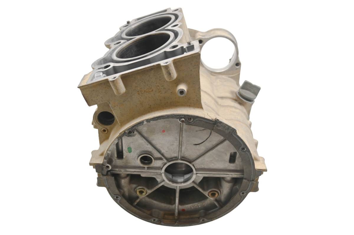Crankcase is in good condition with no cracks or repairs. Finish has light wear. Bearings are good. Bores have light wear and measure 87mm. Comes as pictured. Was removed from a 2015 Polaris Sportsman 850 XP 4x4 with 1909 miles and 384.3 hours.