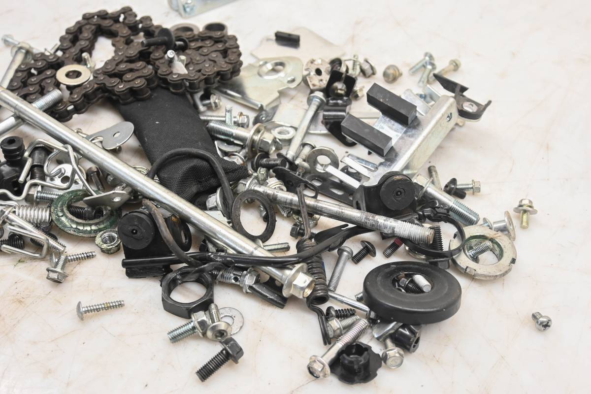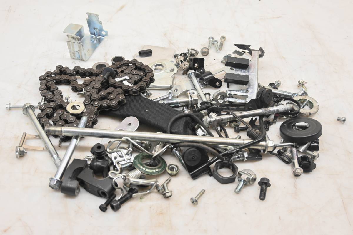 Hardware set includes all of the items pictured. Comes as pictured. Was removed from a 2025 Kawasaki Z125 Pro.