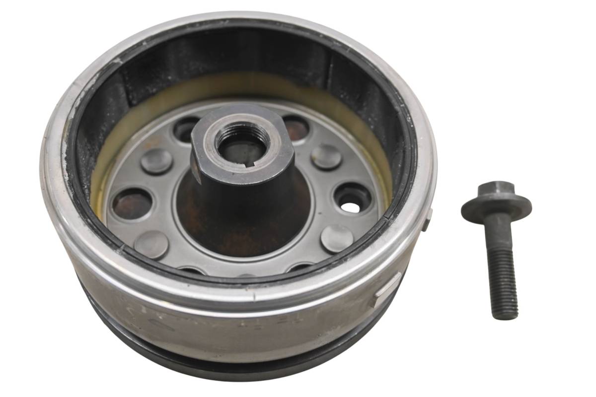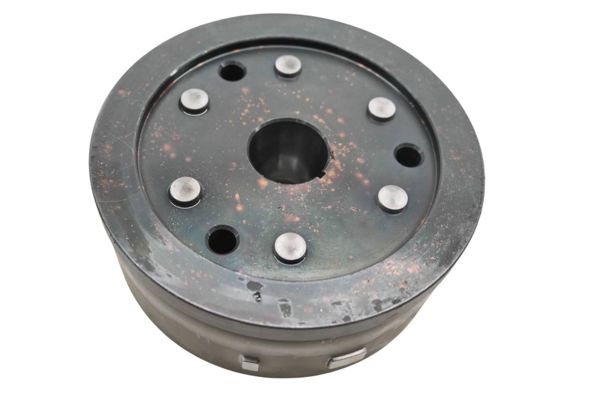 Flywheel is in good working condition. Finish has light wear from use. Comes as pictured. Was removed from a 1991 Kawasaki Mojave 250 2x4 KSF250.