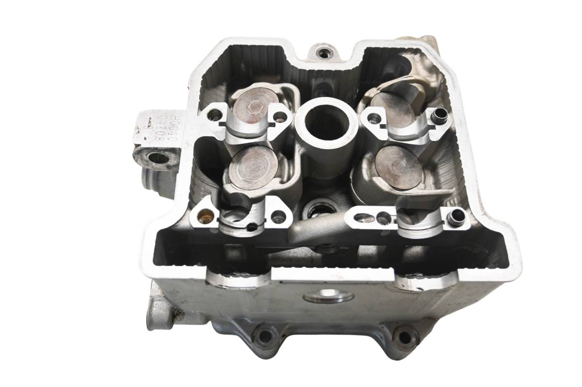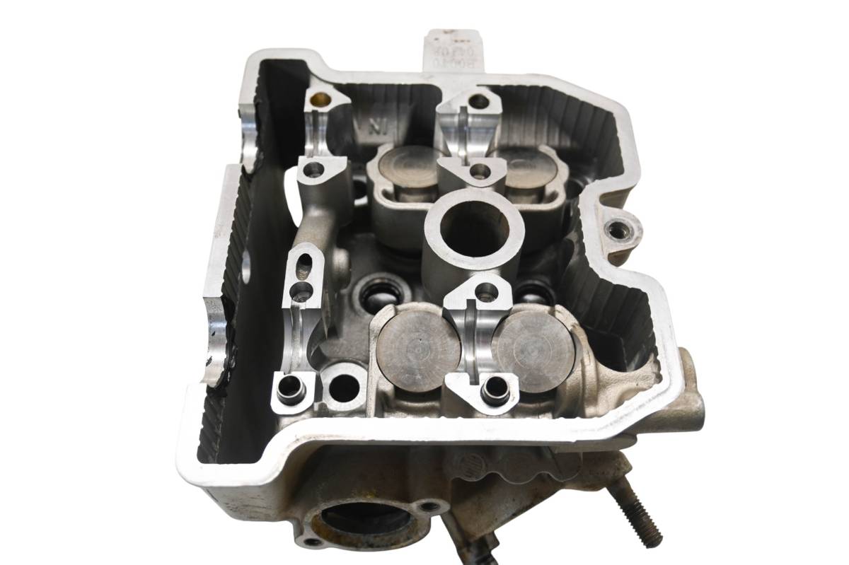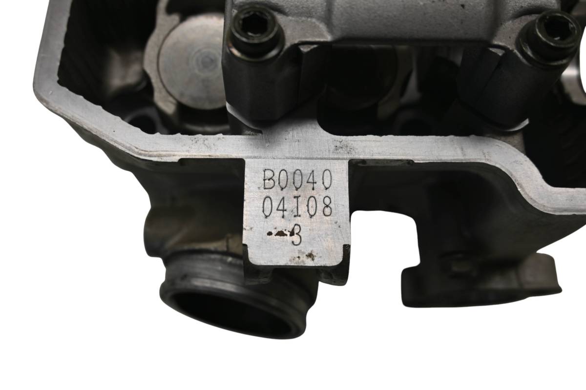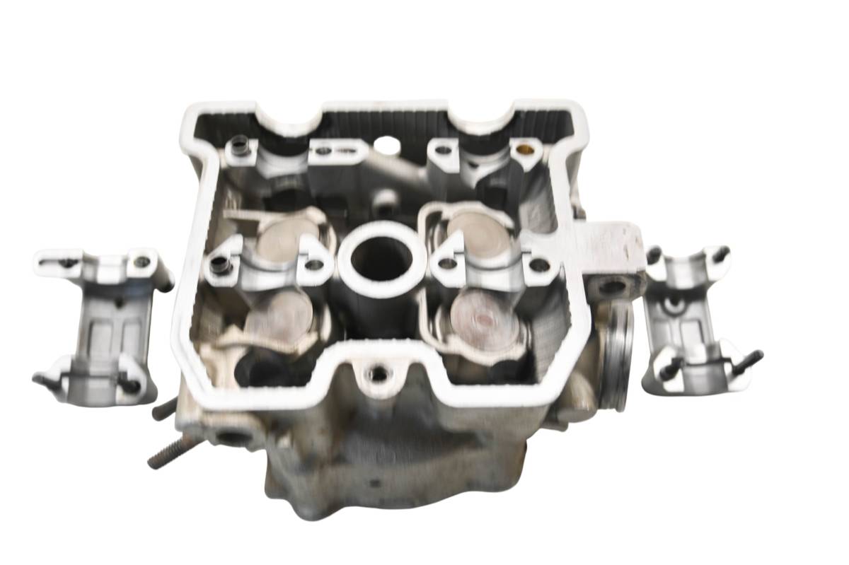 Cylinder head is in good condition. Valves and springs are included. Cam journals are smooth. Combustion chamber has some carbon build up. Comes as pictured. Was removed from a running 2005 Kawasaki KFX400 LTZ400.