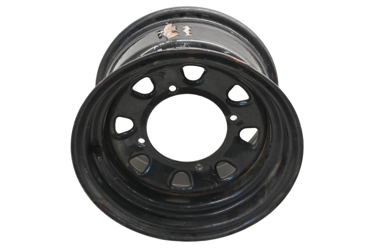 Rim is straight and in good condition. Outside edge has some dings and wear from use. Comes as pictured. Was removed from a 1998 Polaris Sportsman 500 4x4 with 3197 miles.