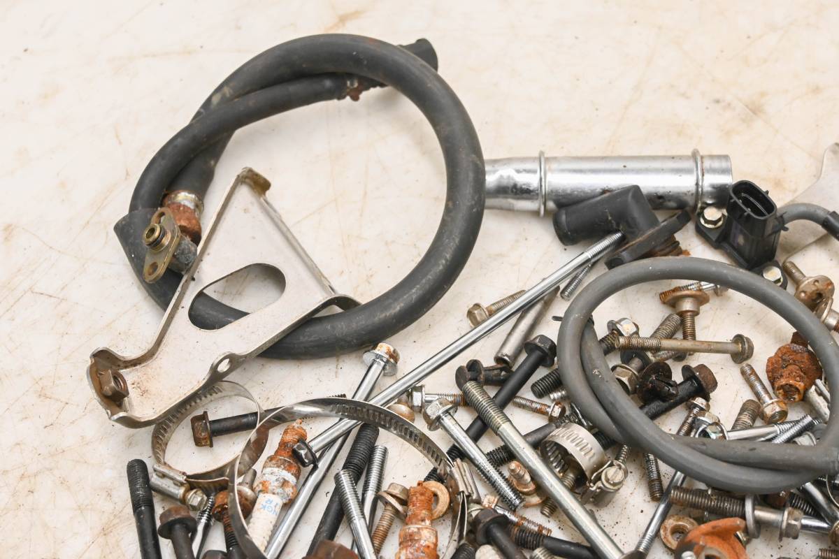 Hardware set includes all of the items pictured. Comes as pictured. Was removed from a 2004 Honda Aquatrax R-12X ARX1200.