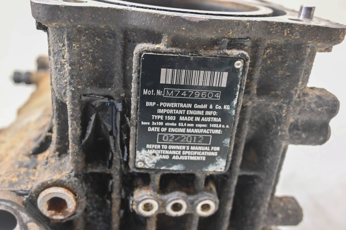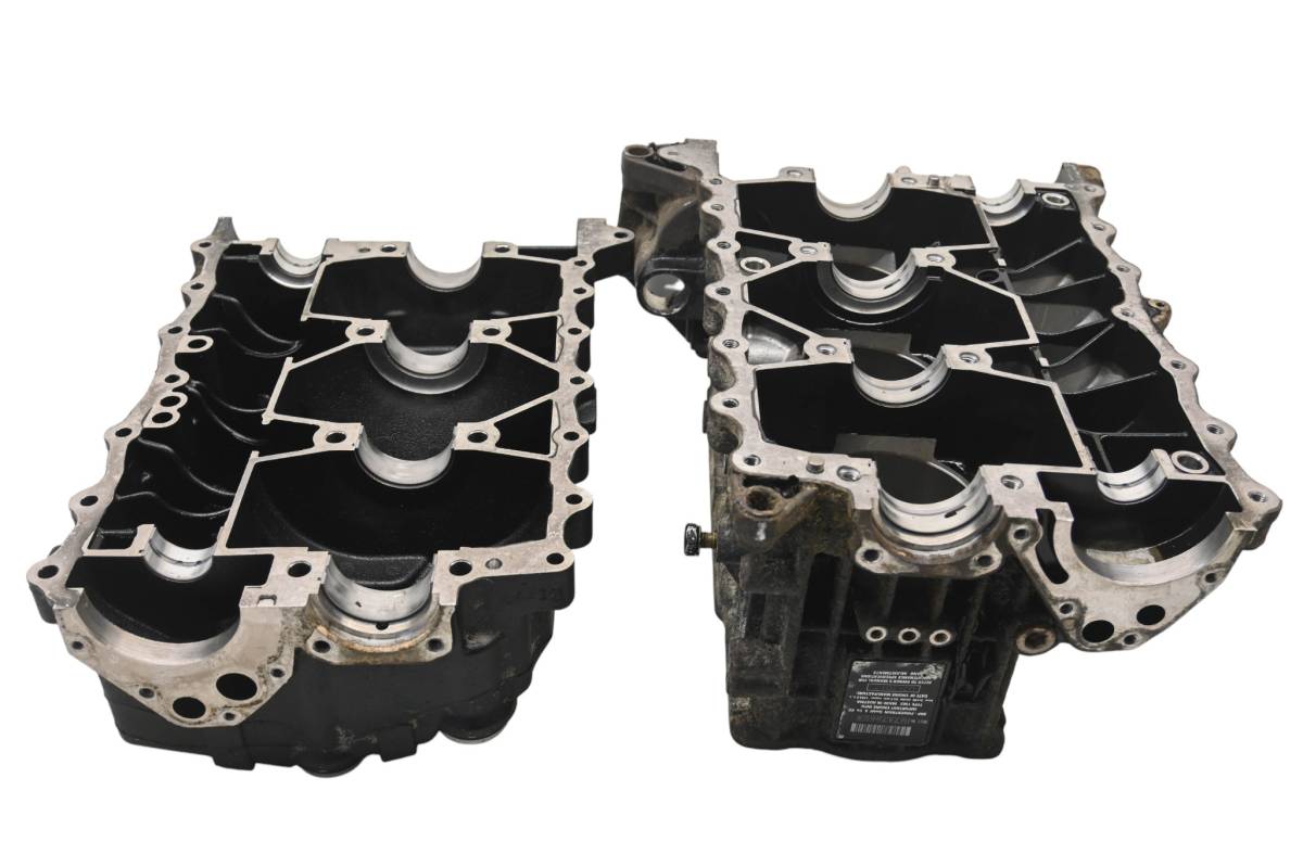Crankcase is in good condition with no cracks or repairs. Finish has light wear. Bearings are good. Bores have light wear and measure 100mm. Comes as pictured. Was removed from a 2012 Sea-Doo RXT-X260 and 281 hours.