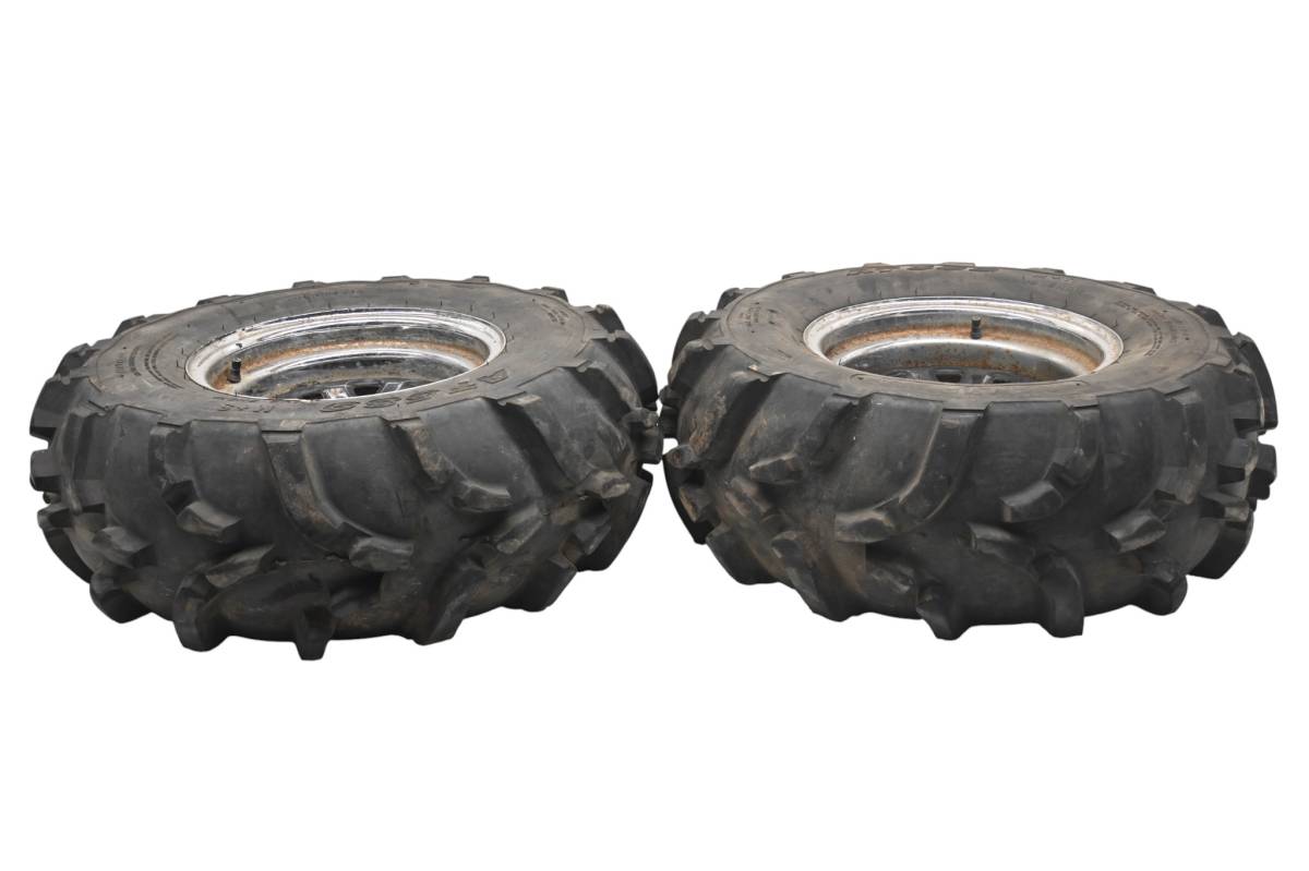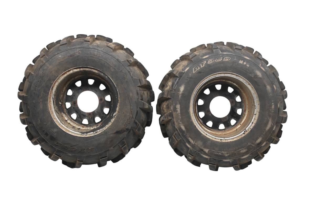 Rims are in good condition. Have light wear and scuff marks. Tires are in good shape with no plugs or holes. Comes as pictured. Was removed from a running 2003 Kawasaki Prairie 650 4x4 KVF650.