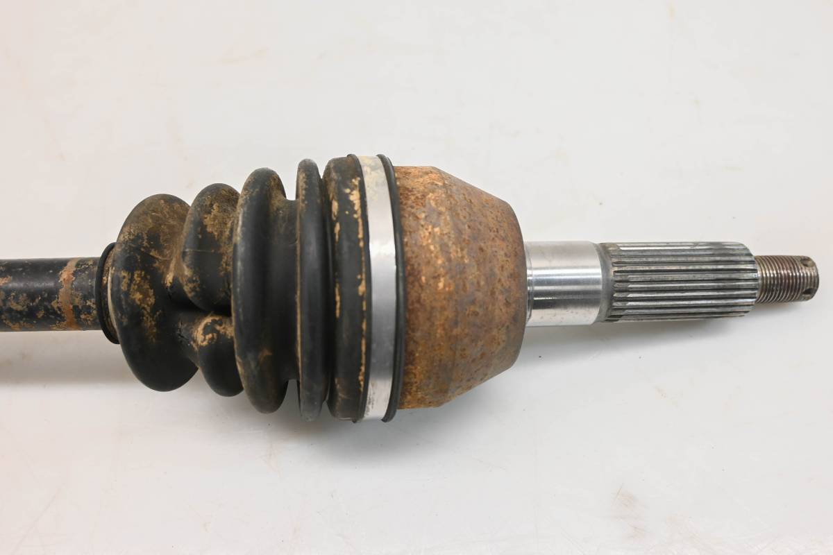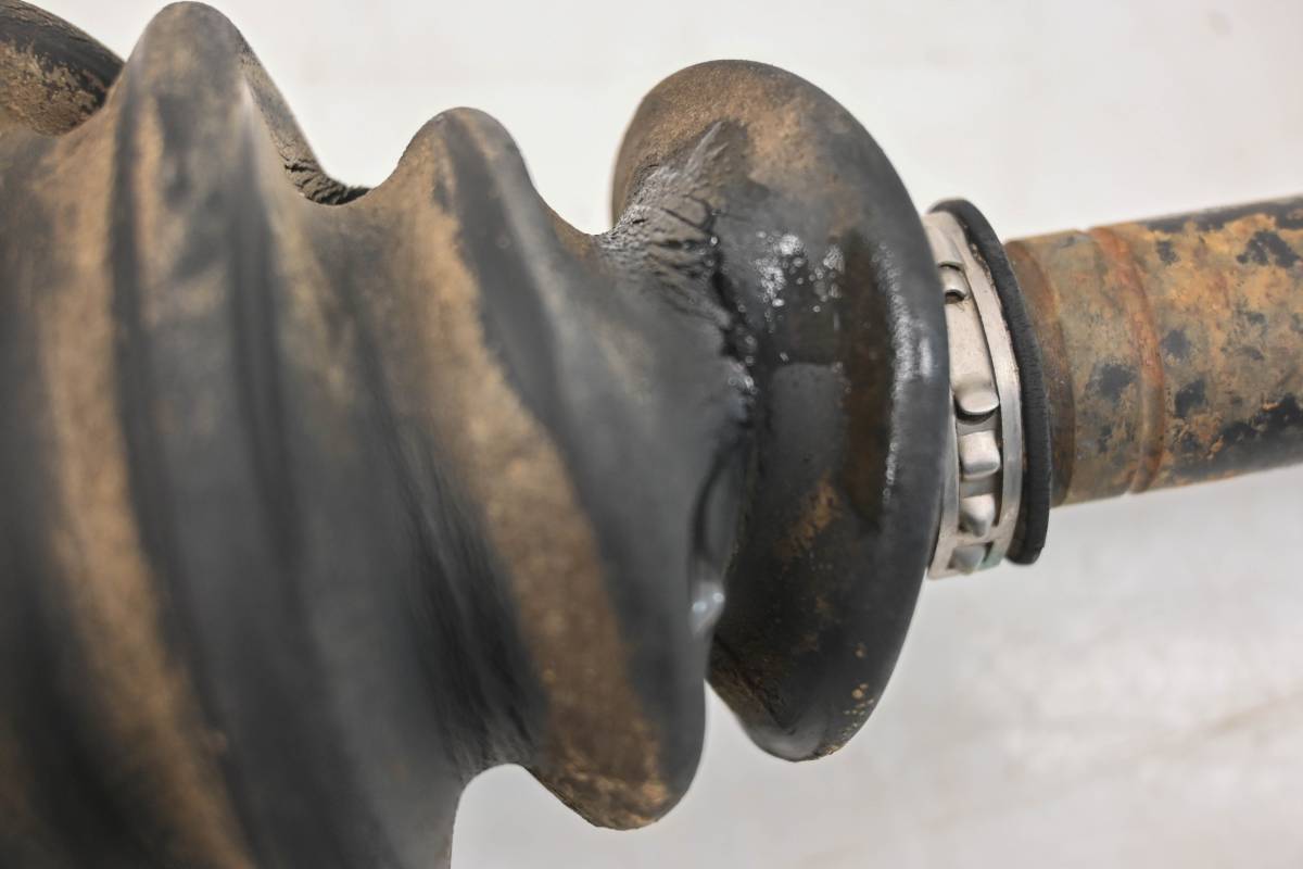 Axle is in good condition. Splines and threads are straight, boots are ripped. Comes as pictured. Was removed from a running 2016 Polaris Ranger ETX with 5557 miles and 1109.4 hours.