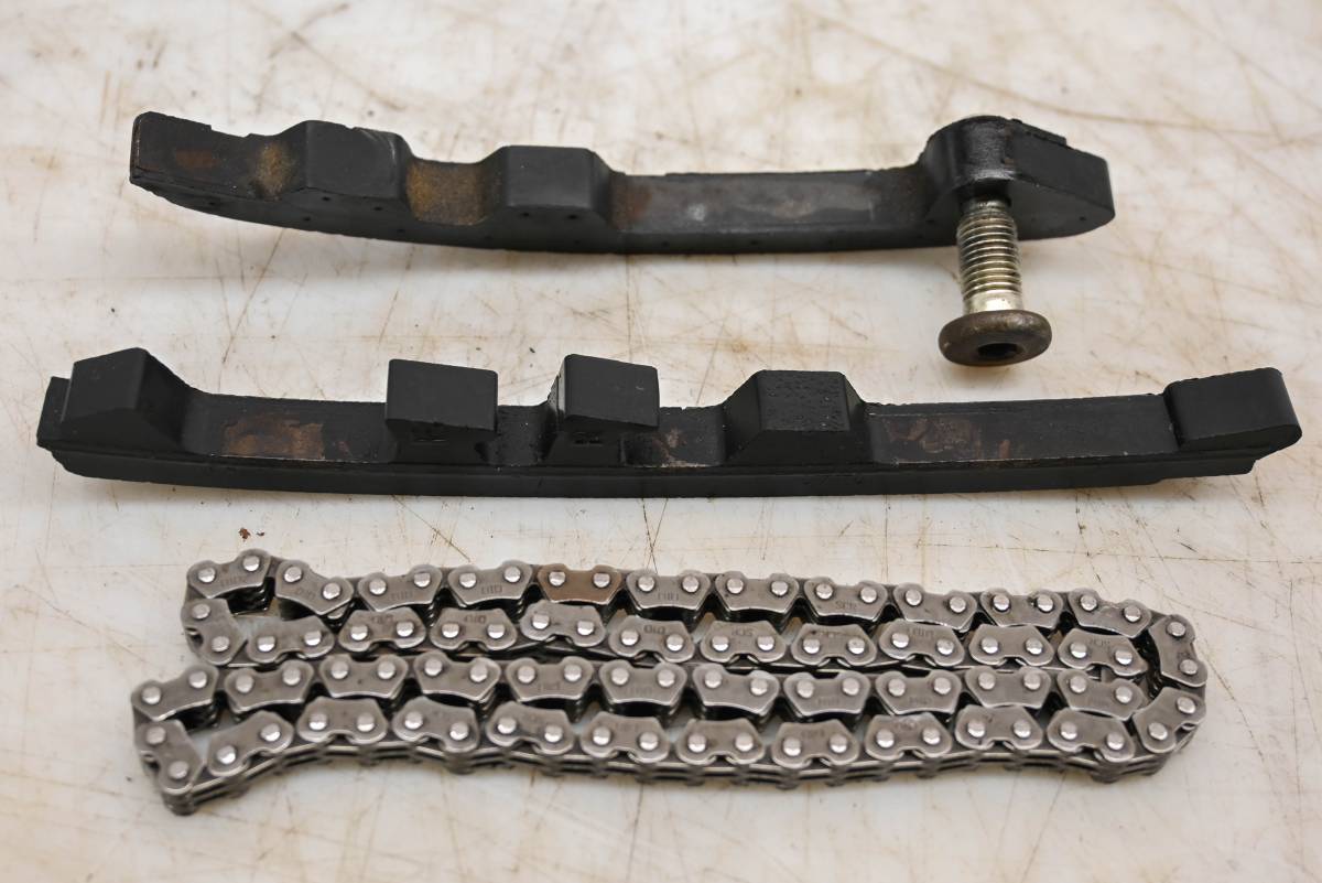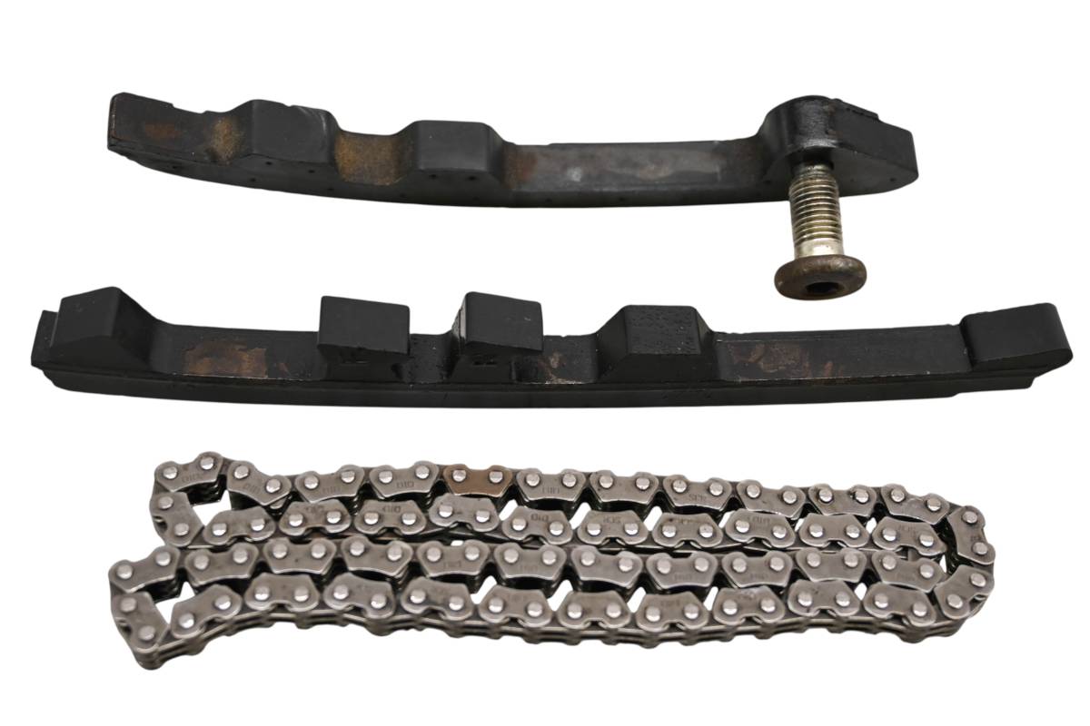 Chain and guides are in good condition. Guides have light wear from chain. Comes as pictured. Was removed from a 2006 Kawasaki Brute Force KVF750B.