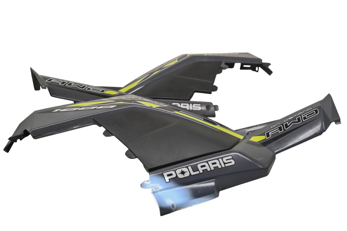 Side panels are in good condition with no cracks. Finish has light wear. Comes as pictured. Was removed from a 2020 Polaris Sportsman XP 1000 with 2398.5 miles and 107.9 hours.