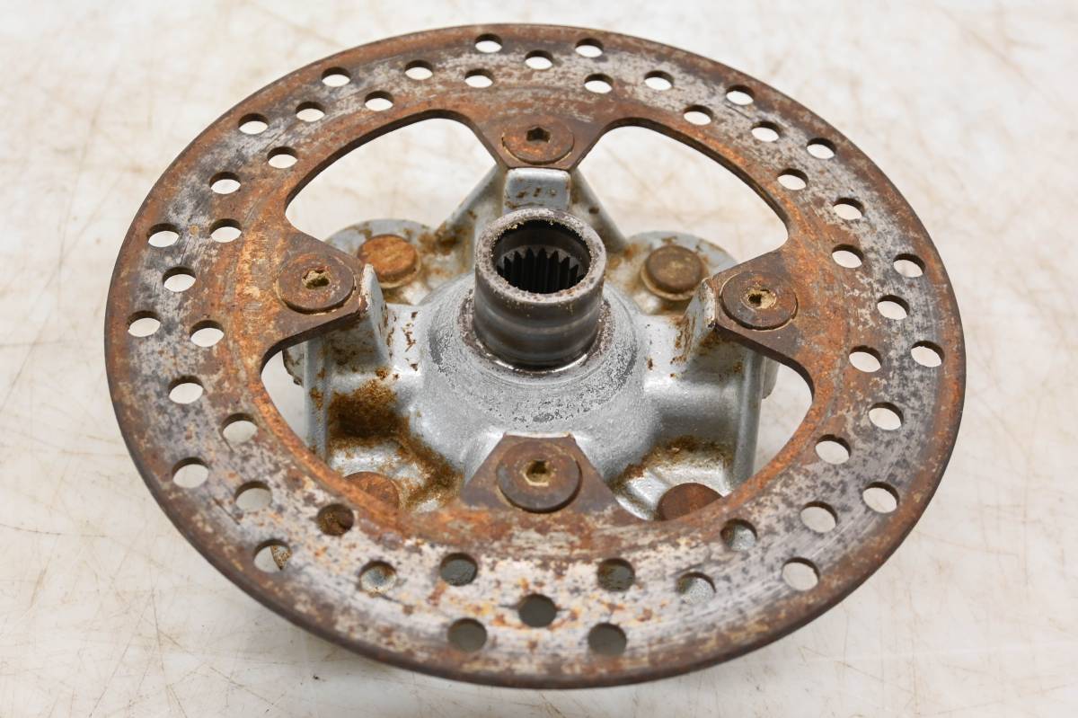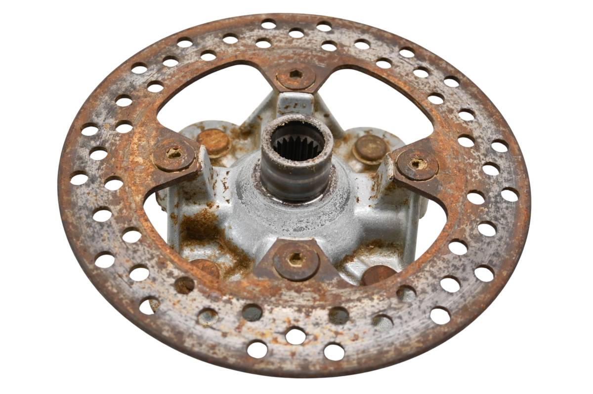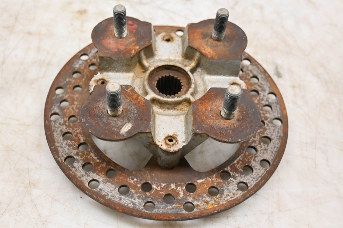 Hub and rotor are in good condition. Rotor is straight and has light wear from use. Comes as pictured. Was removed from a 2006 Kawasaki Brute Force KVF750B.