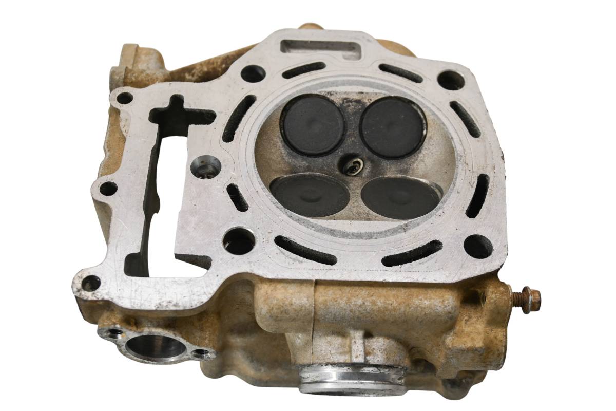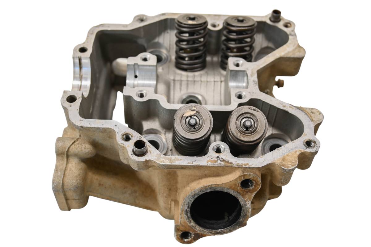 Cylinder head is in good condition. Valves and springs are included. Cam journals are smooth. Combustion chamber has some carbon build up. Comes as pictured. Was removed from a 2006 Kawasaki Brute Force KVF750B.