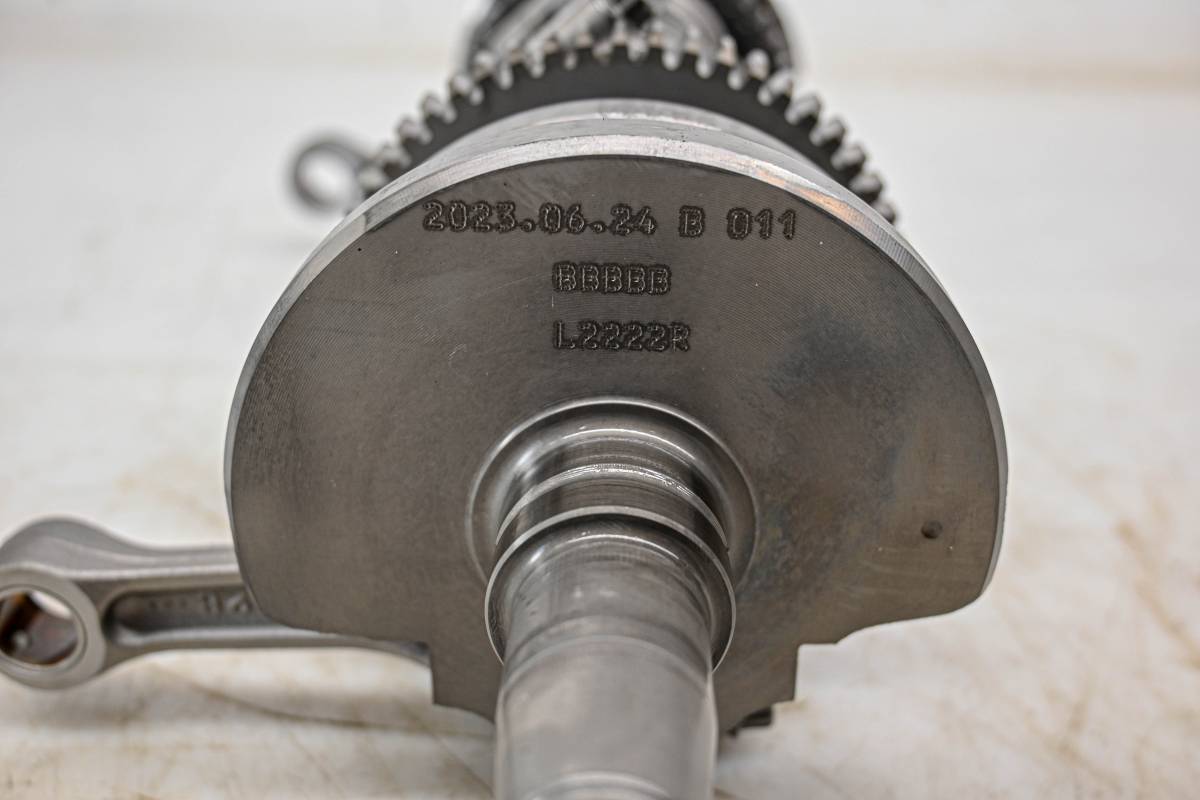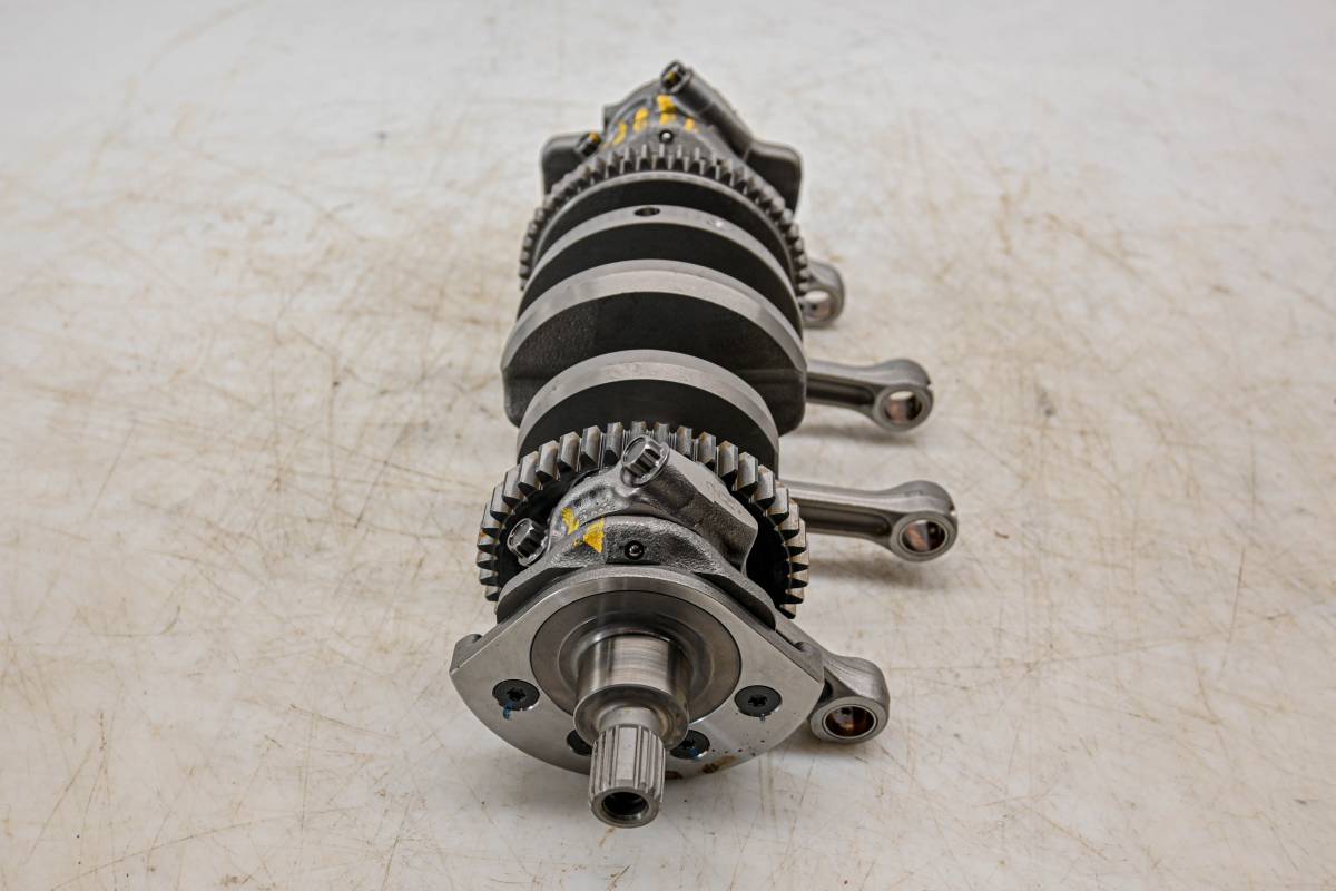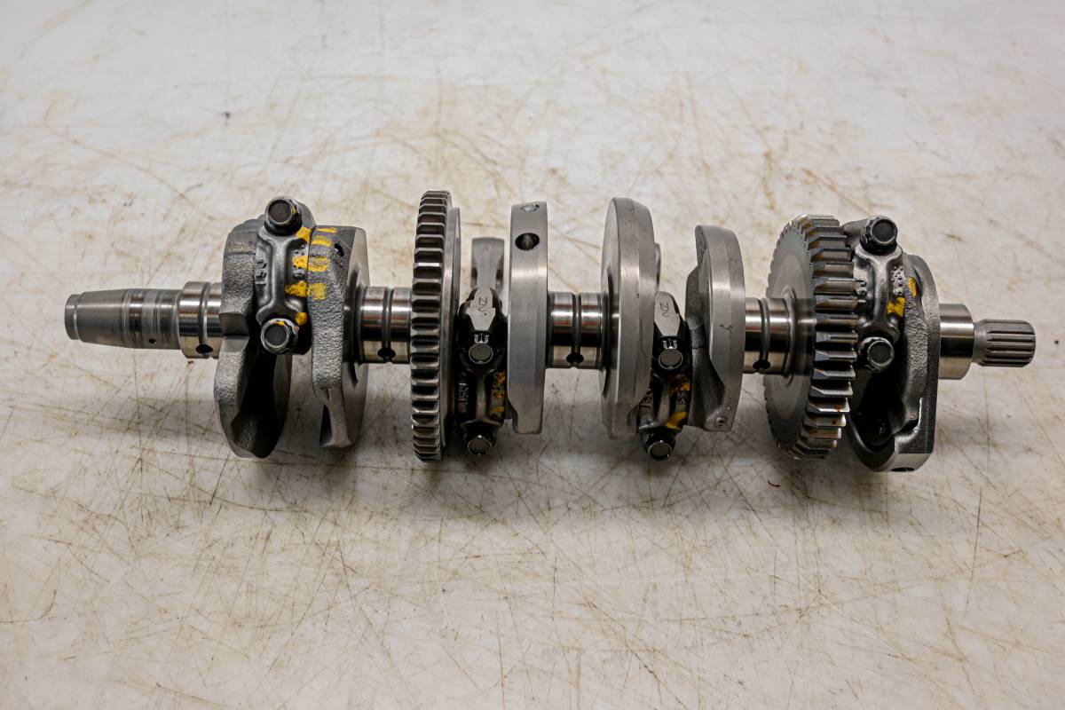 Crank is in good condition. Journals are smooth, splines and threads are straight. Big end clearances are 0.10mm, 0.10mm, 0.13mm, and 0.10mm. Comes as pictured. Was removed from a 2024 Suzuki GSX-R750.