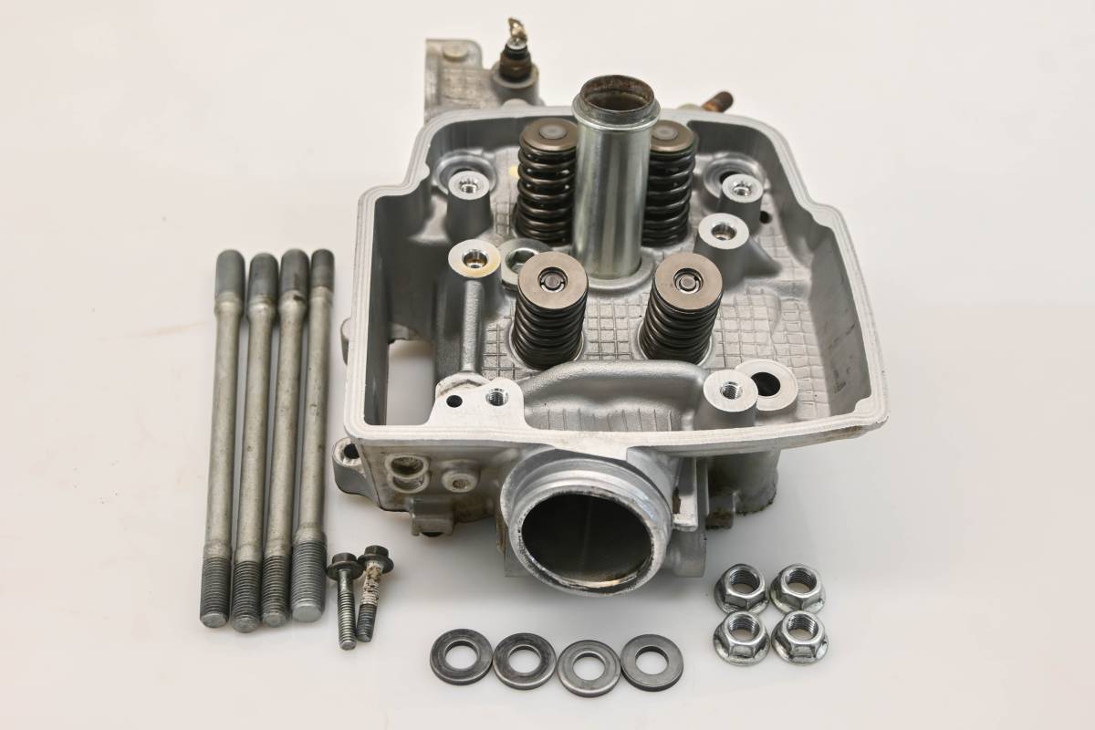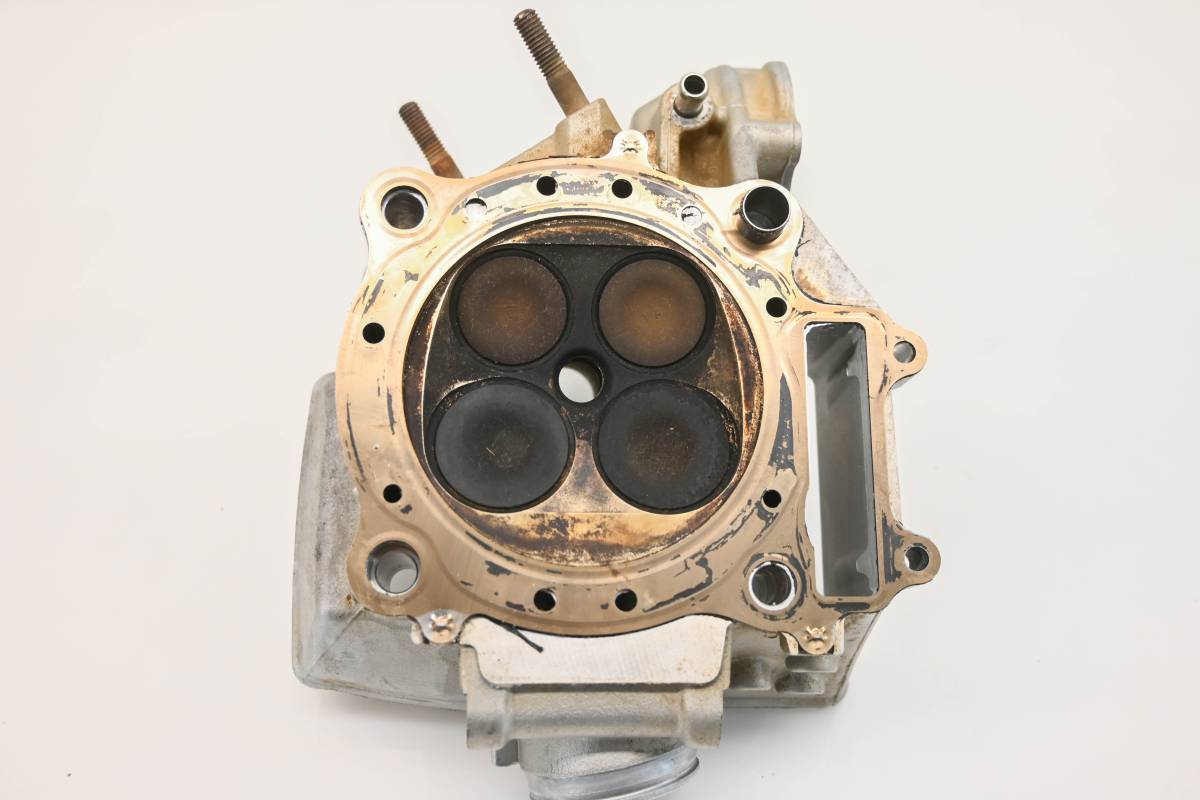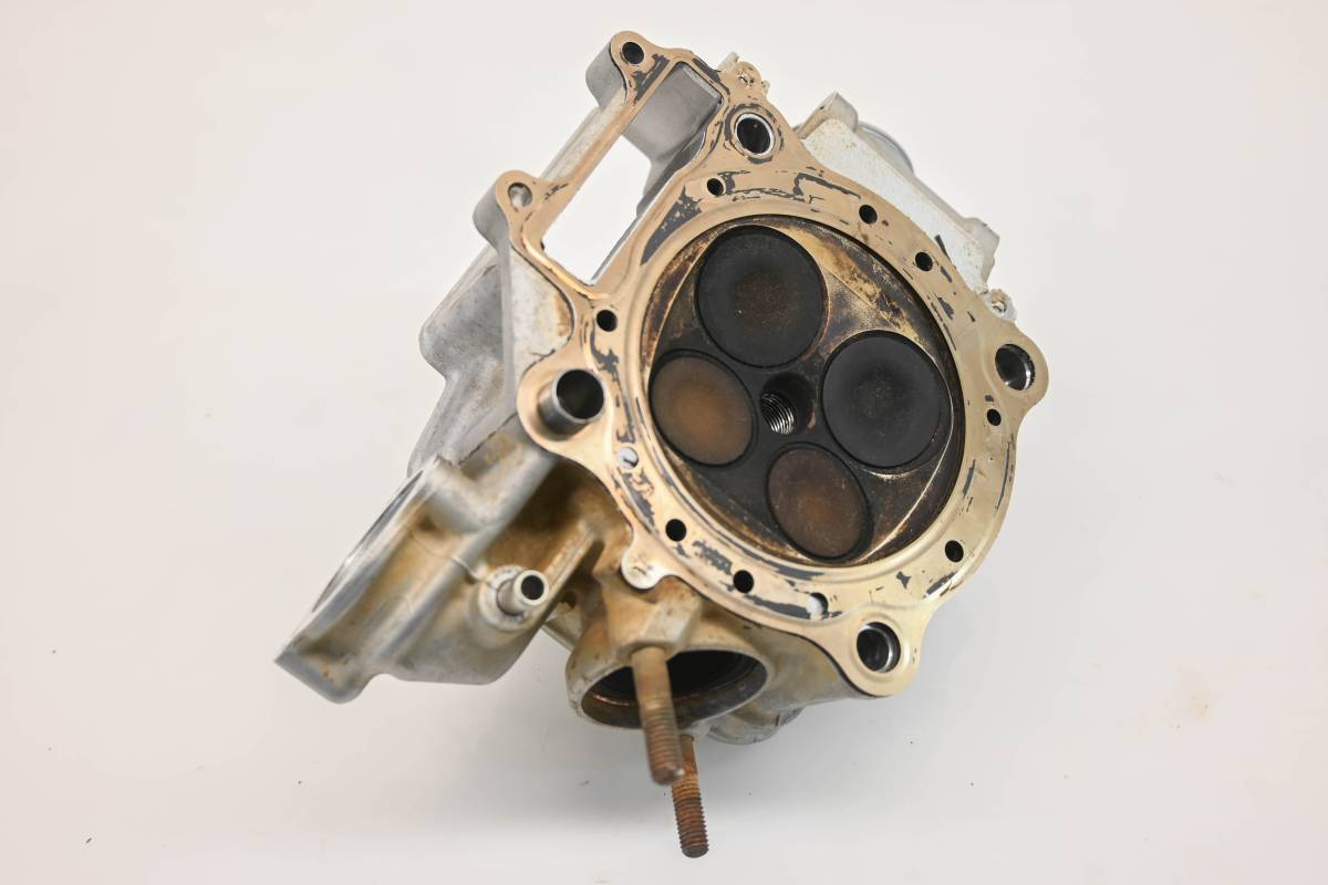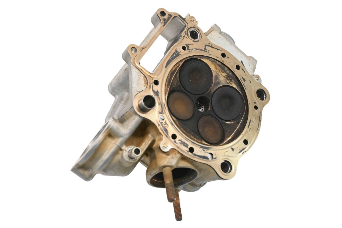 Cylinder head is in good condition. Valves and springs are included. Cam journals are smooth. Combustion chamber has some carbon build up. Comes as pictured. Was removed from a running 2008 Honda TRX450ER.