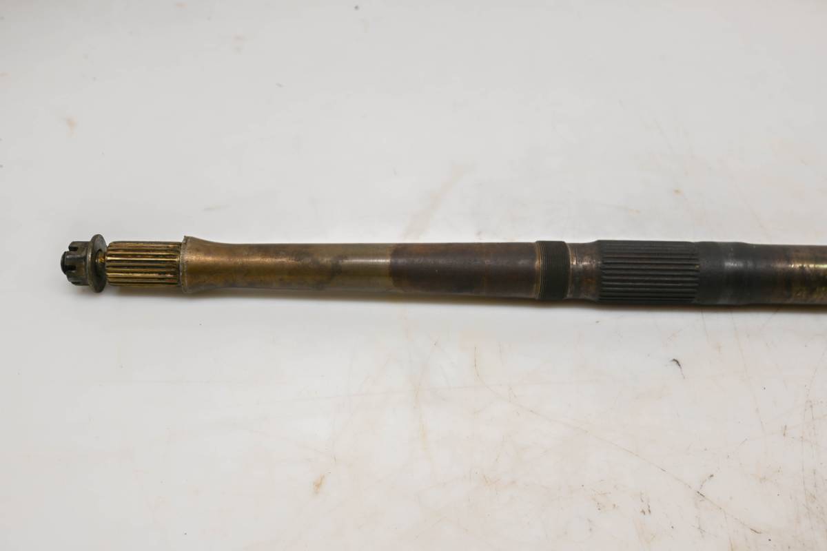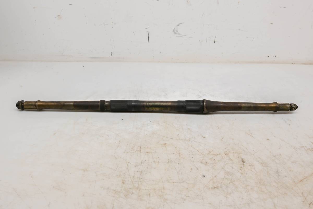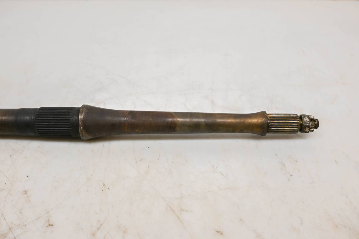 Axle is straight and in good condition. Finish has light wear. Splines and threads are straight. Comes as pictured. Was removed from a running 2006 Yamaha Raptor 350 2x4 YFM350R.
