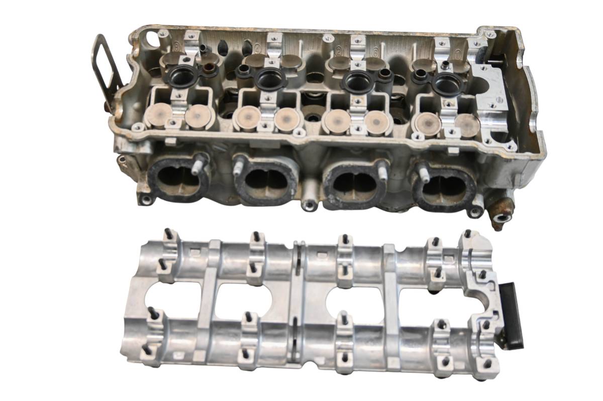 Cylinder head is in good condition. Valves and springs are included. Cam journals are smooth. Combustion chamber has some carbon build up. Comes as pictured. Was removed from a 2008 Kawasaki Ultra 250X JT1500.