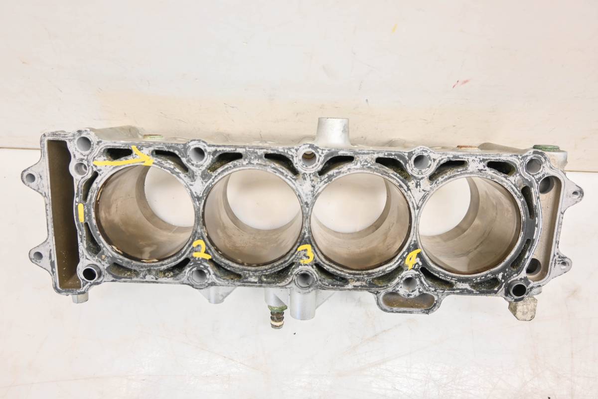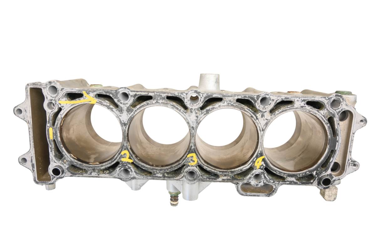 Cylinder is in good condition. Bore has light wear, could use a ball hone. Bores measure 83mm. Comes as pictured. Was removed from a 2008 Kawasaki Ultra 250X JT1500.