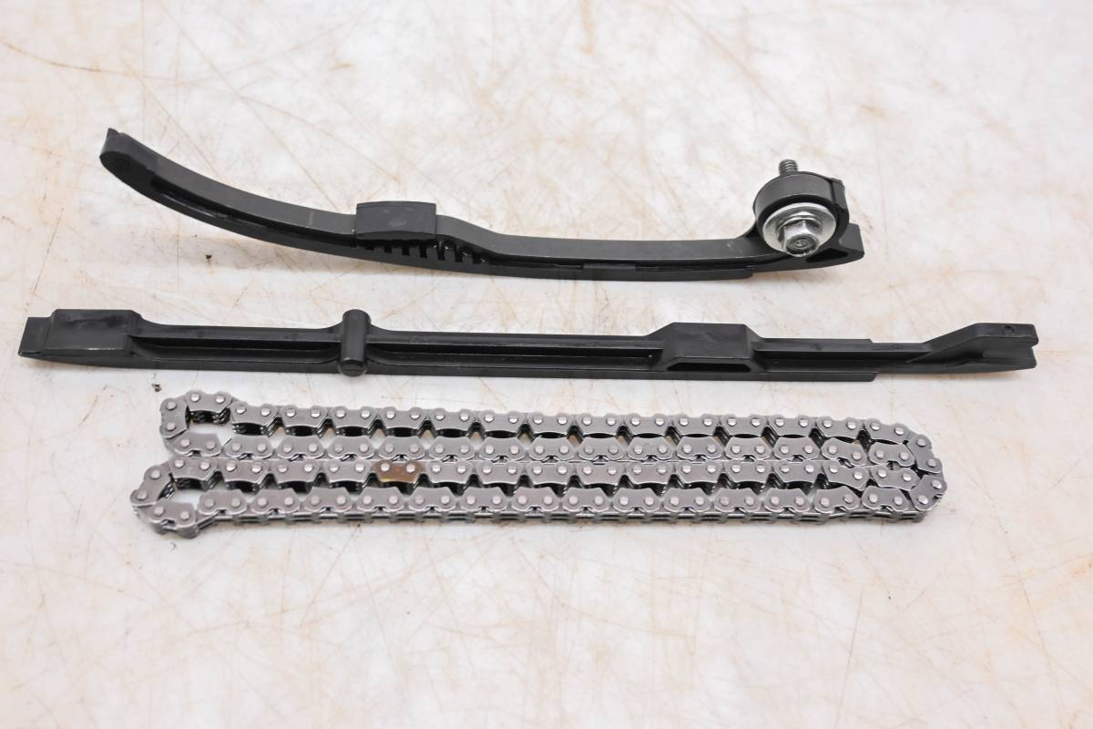 Chain and guides are in good condition. Guides have light wear from chain. Comes as pictured. Was removed from a running 2022 Honda CB300R ABS.