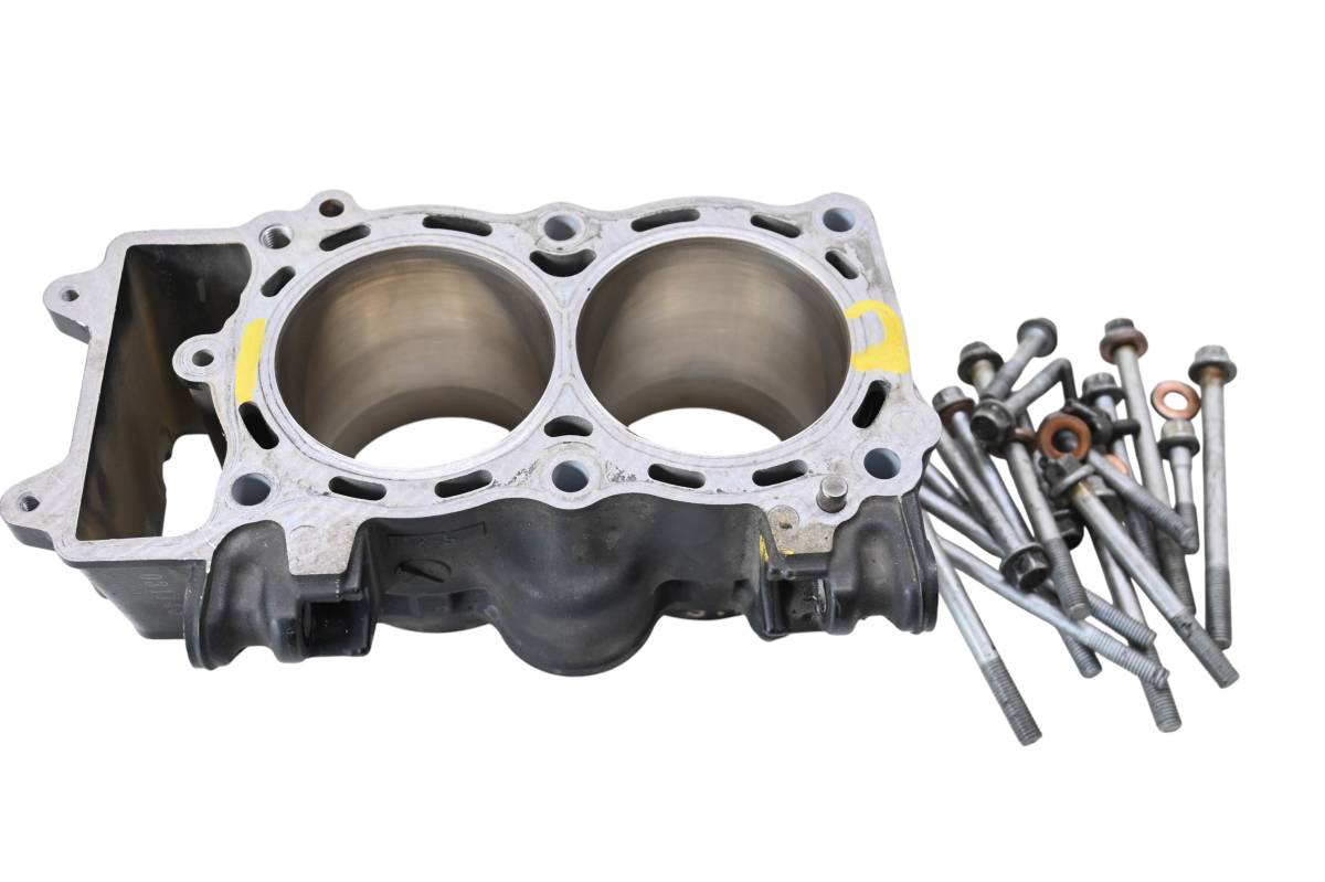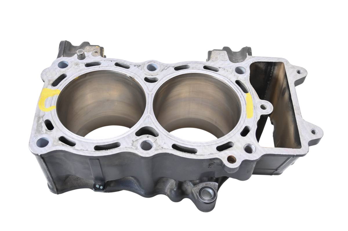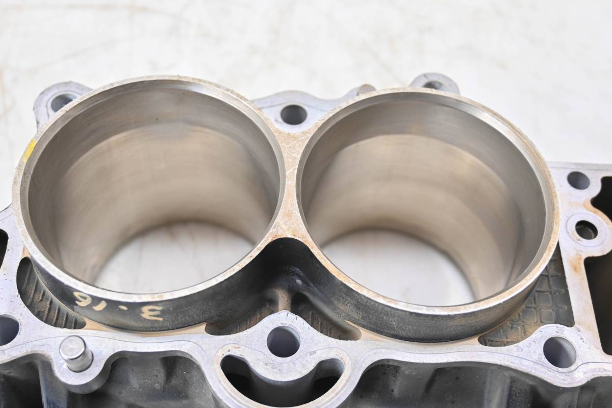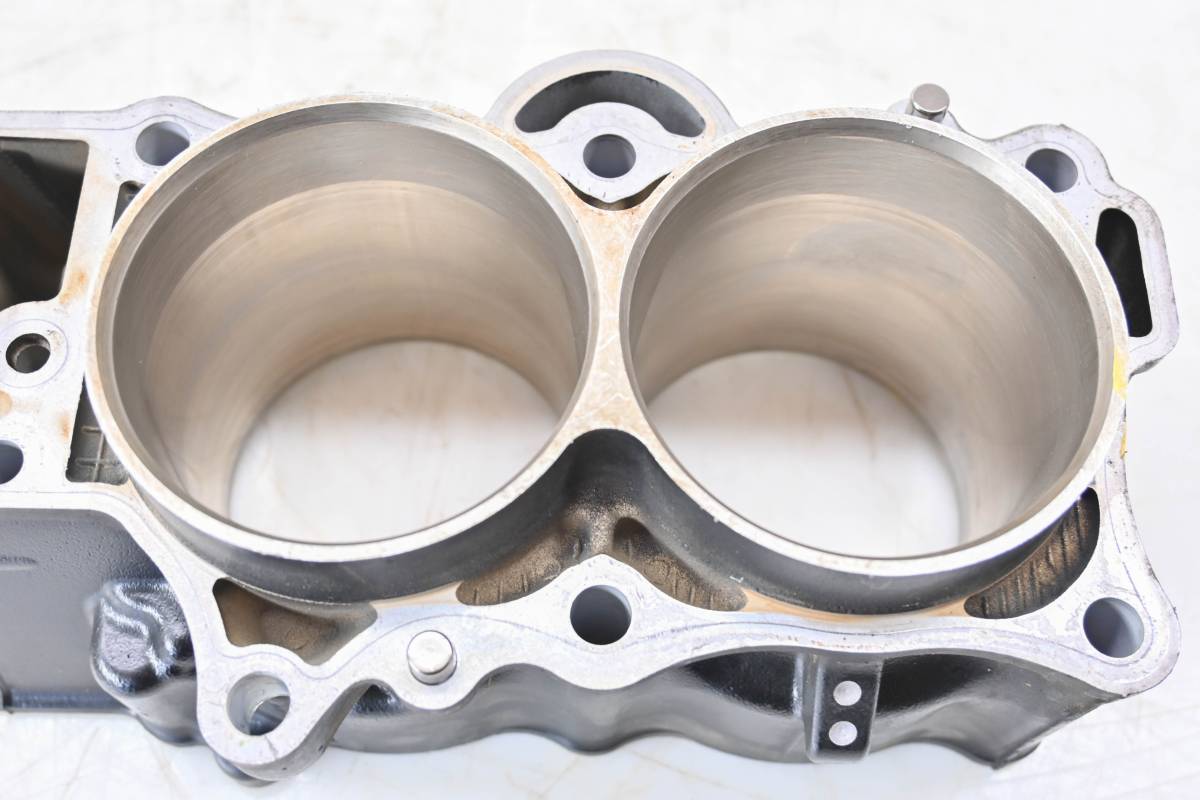 Cylinder is in good condition. Bore has light wear, could use a ball hone. Bore measures 83mm x2. Comes as pictured. Was removed from a 2011 Kawasaki Versys 650 KLE650 with 33660 miles.