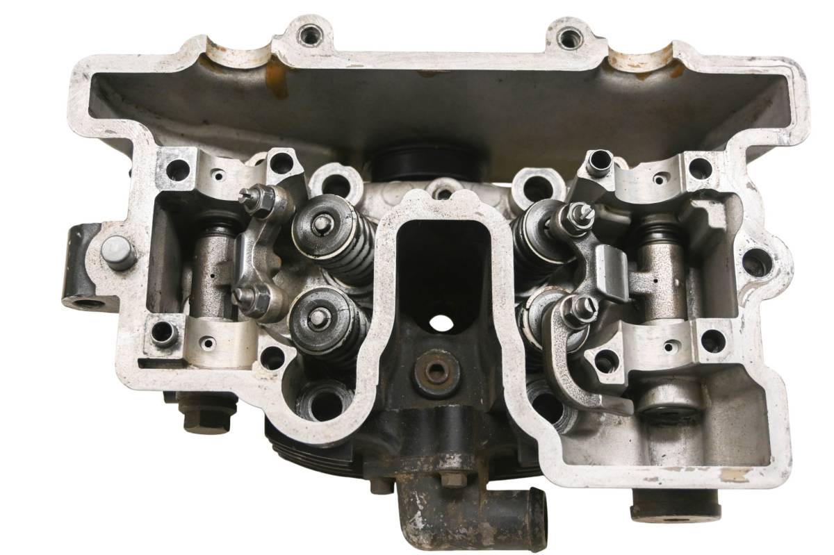 Cylinder head is in good condition. Valves and springs are included. Cam journals are smooth. Combustion chamber has some carbon build up. Cam covers are missing. Comes as pictured. Was removed from a 2005 Kawasaki KLR250.