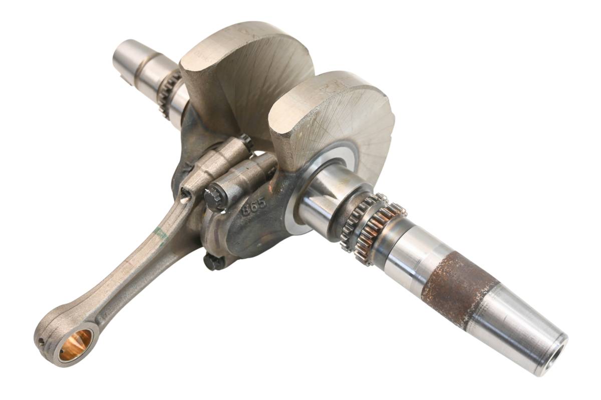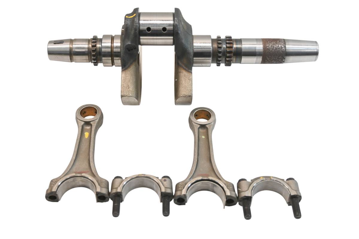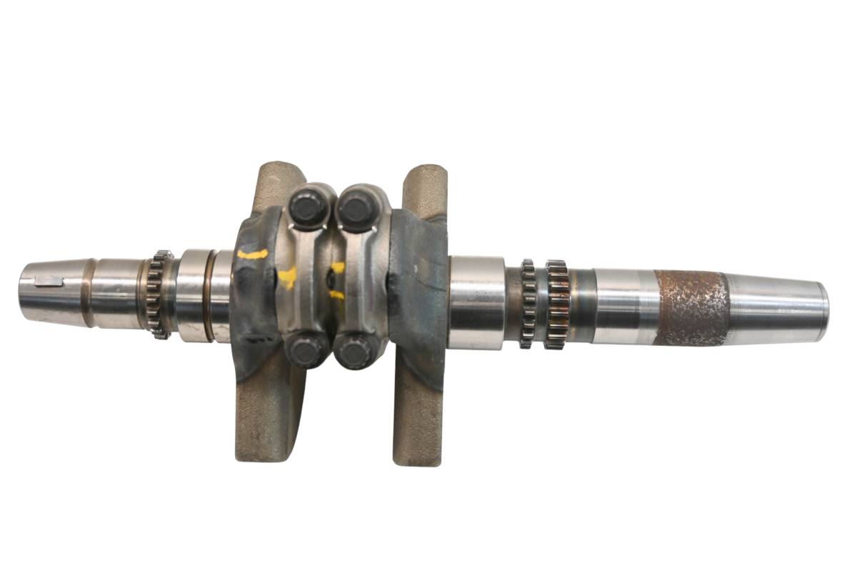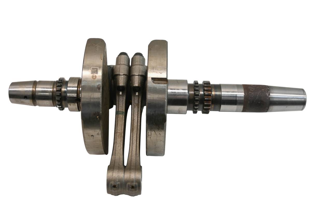 Crank is in good condition. Journals are smooth, splines and threads are straight. Big end clearance is .356mm. Comes as pictured. Was removed from a running 2022 Can-Am Defender XT HD10 with 4743.4 miles and 753.3 hours.